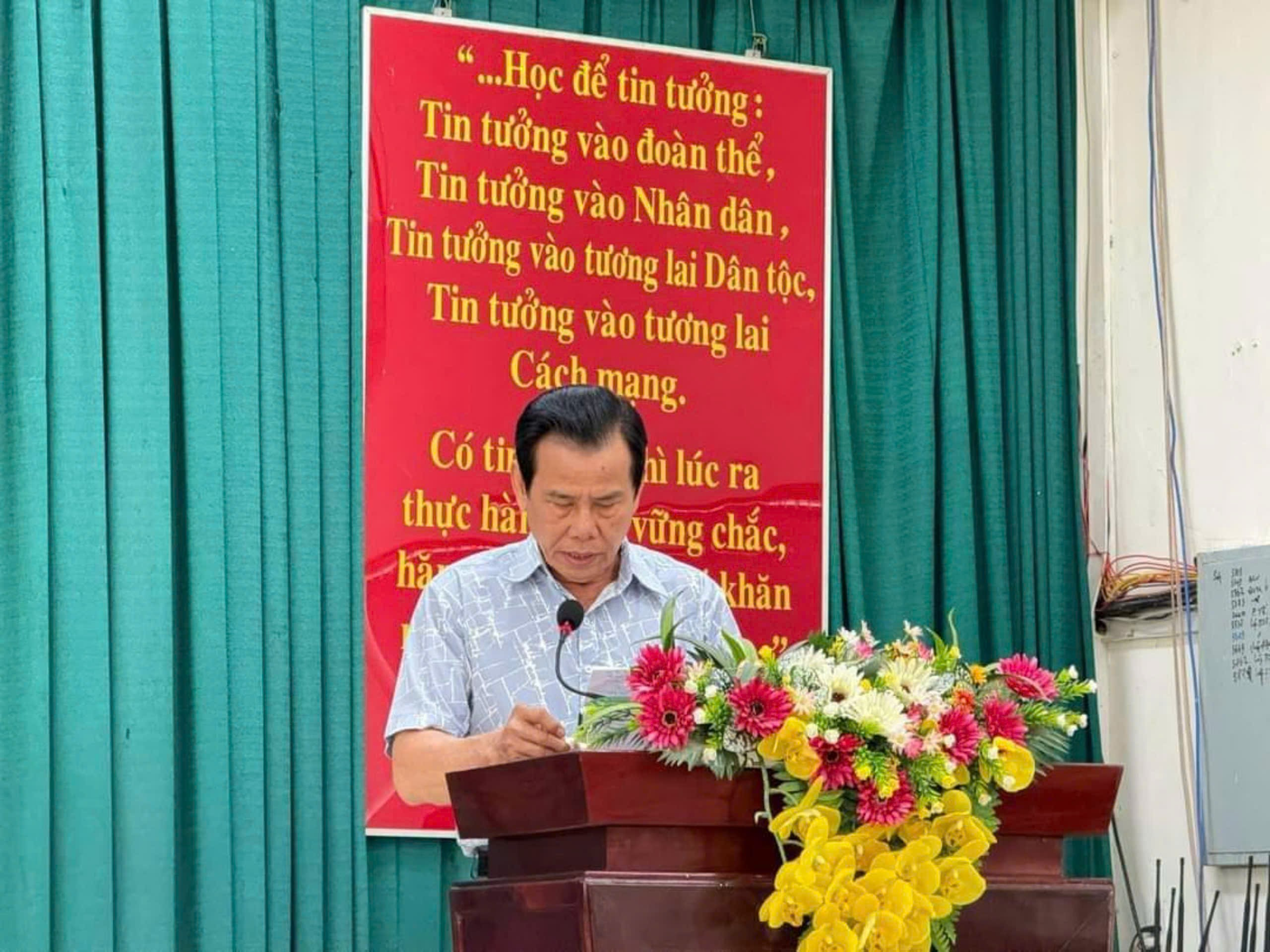 ông Lê Chí Phương, Chủ tịch Hội Khuyến học huyện phát biểu khai mạc hội thi