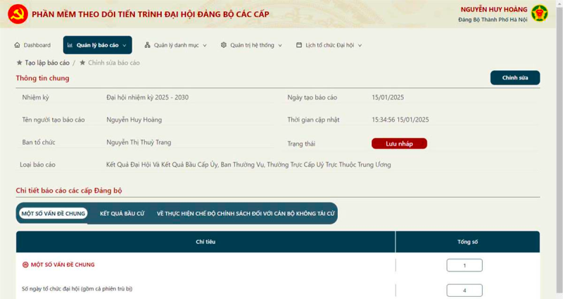 Giao diện Phần mềm theo dõi tiến trình Đại hội Đảng bộ các cấp qua ứng dụng VNeID