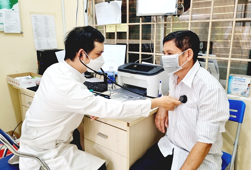 Bác sỹ Trung tâm y tế huyện đang khám bệnh cho một người dân