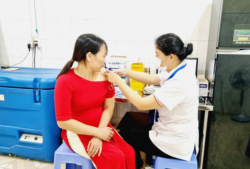 Chị Thắm đang được tiêm vắc xin phòng dại do chó cắn
