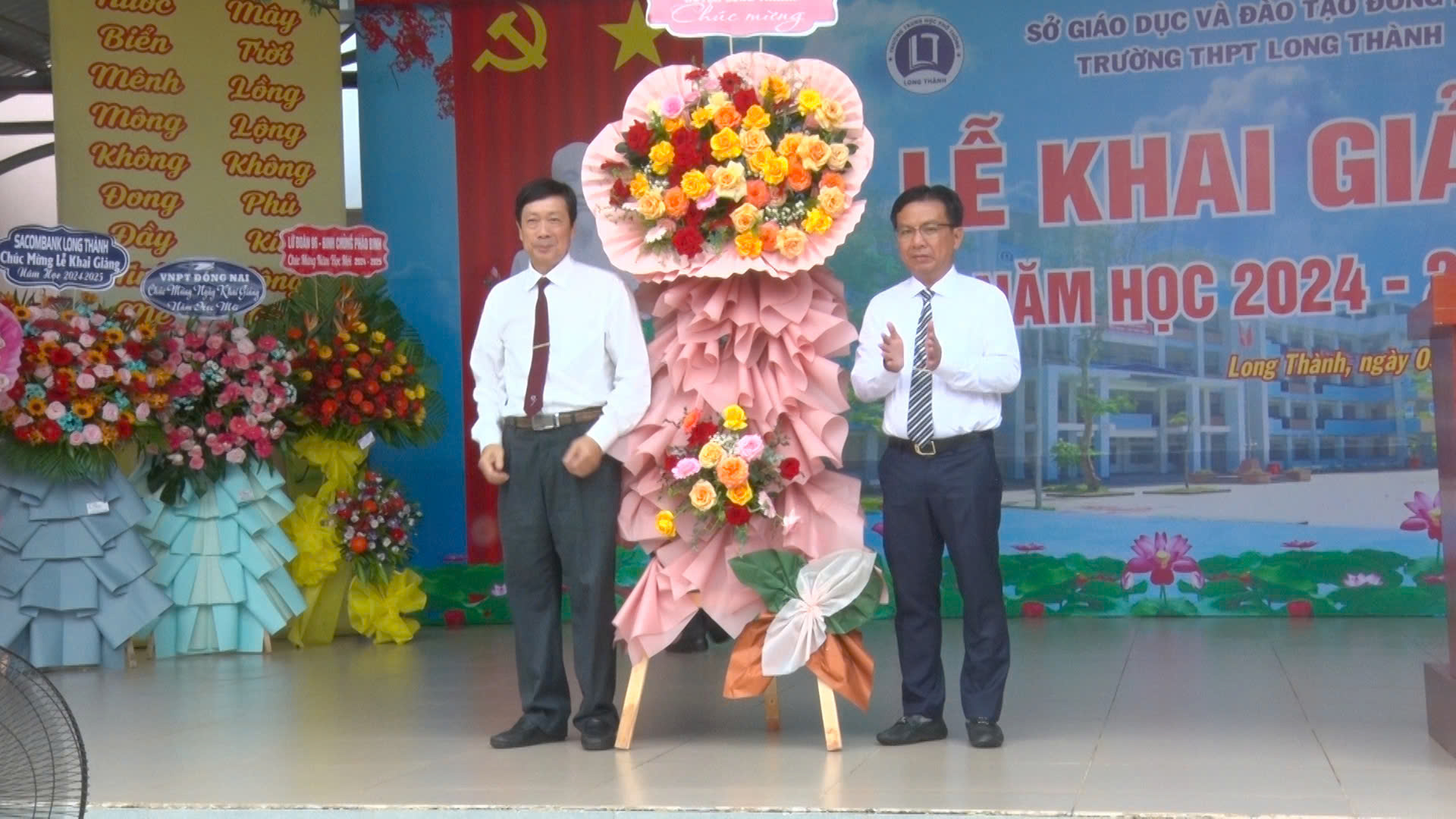 Tại lễ khai giảng, Trường THPT Long Thành đã đón nhận được những lẵng hoa tươi thắm của các ban ngành, đơn vị, địa phương. Thay mặt lãnh đạo tỉnh và huyện, đồng chí Lê Văn Tiếp – Phó Bí thư HU, Chủ tịch UBND huyện đã đọc thư của Tổng Bí thư - Chủ tịch nước Tô Lâm gửi ngành Giáo dục nhân dịp năm học mới 2024-2025. Năm học này, Trường THPT Long Thành đón hơn 500 em học sinh lớp 10 trên tổng số 1.500 em học sinh theo học ở 4 khối lớp với tinh thần đoàn kết, quyết tâm hoàn thành xuất sắc nhiệm vụ năm học mới. Dịp này nhà trường cũng tổ chức khen thưởng cho các học sinh đạt thành tích tốt tại các kỳ thi trong dịp hè vừa qua. Đồng thời trao tặng 35 suất học bổng với trị giá 1 triệu đồng/suất cho các em học sinh có hoàn cảnh khó khăn, giúp các em nỗ lực vượt khó, vươn lên trong học tập.