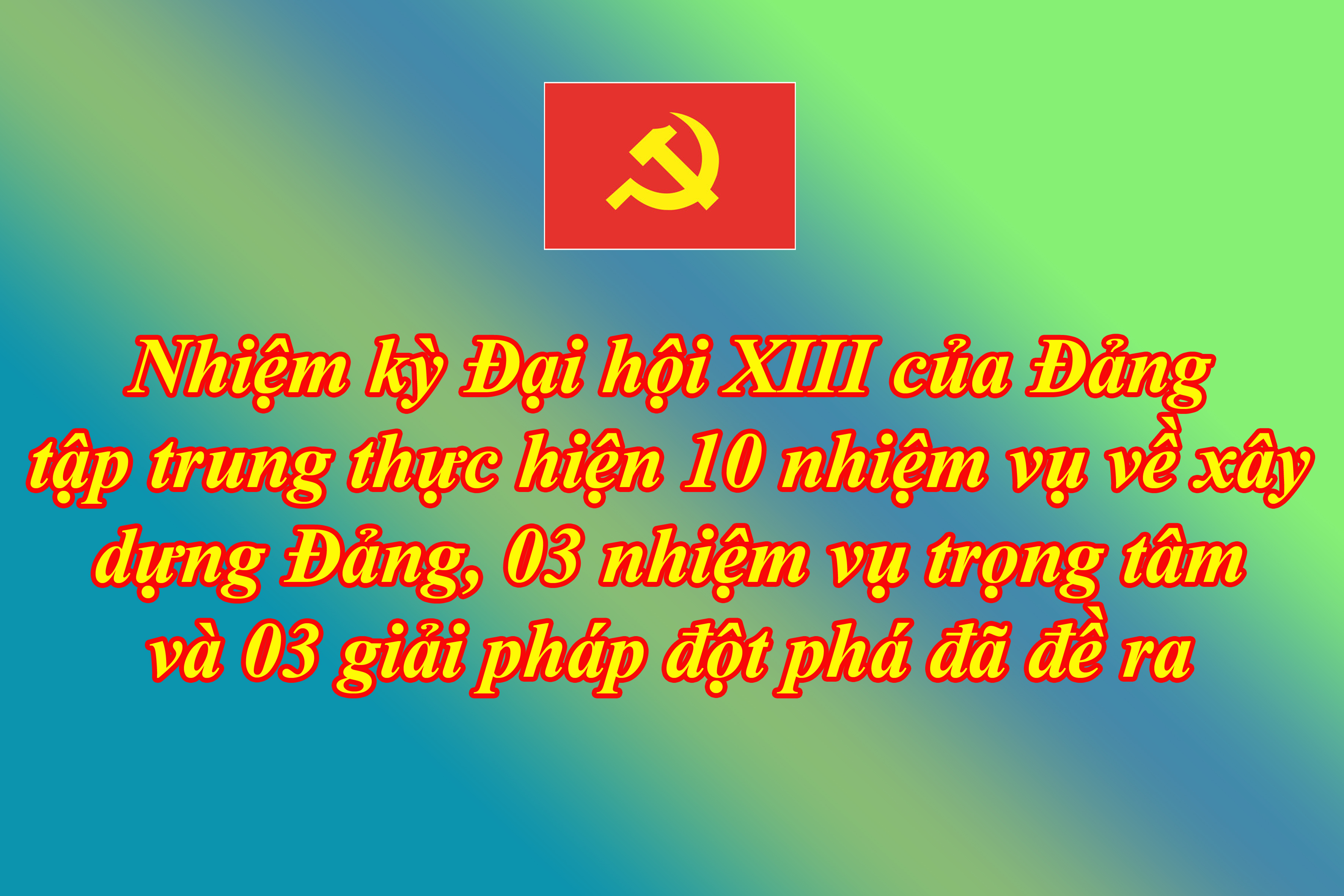 - Dự thảo Báo cáo của Ban Chấp hành Trung ương Đảng khóa XIII tổng kết công tác xây dựng Đảng và thi hành Điều lệ Đảng trình Đại hội đại biểu toàn quốc lần thứ XIV của Đảng: khẳng định nhiệm kỳ Đại hội XIII của Đảng tập trung thực hiện 10 nhiệm vụ về xây dựng Đảng, 03 nhiệm vụ trọng tâm và 03 giải pháp đột phá Đại hội XIII đề ra; các chủ trương, nhiệm vụ trọng tâm được Ban Chấp hành Trung ương Đảng, Bộ Chính trị, Ban Bí thư, đồng chí Tổng Bí thư tập trung lãnh đạo, chỉ đạo với phương pháp tổ chức thực hiện rất mới, quyết liệt, hiệu quả, toàn diện, đồng bộ, sâu sắc và đạt được những kết quả quan trọng, tạo nền tảng để đất nước vững tin bước vào kỷ nguyên phát triển giàu mạnh, thịnh vượng, tiến tới Đại hội XIV của Đảng, đánh dấu thời điểm đất nước bước vào kỷ nguyên mới, kỷ nguyên vươn mình của dân tộc. Đảng ta tiếp tục thực hiện tốt “bốn kiên định” bằng tinh thần sáng tạo, theo phương pháp cách mạng Hồ Chí Minh để xây dựng nước Việt Nam hòa bình, độc lập, dân chủ, giàu mạnh, phồn vinh, văn minh, hạnh phúc, vững bước đi lên chủ nghĩa xã hội. Khẳng định sự lãnh đạo của Đảng là nhân tố quyết định mọi thắng lợi của cách mạng, xây dựng Đảng là nhiệm vụ then chốt, chú trọng nâng cao hiệu lực, hiệu quả lãnh đạo, cầm quyền của Đảng, tăng cường xây dựng, chỉnh đốn Đảng và hệ thống chính trị trong sạch, vững mạnh toàn diện; đấu tranh ngăn chặn, đẩy lùi xử lý nghiêm cán bộ, đảng viên suy thoái về tư tưởng, chính trị, đạo đức, lối sống, “tự diễn biến”, “tự chuyển hóa”, bảo vệ thành quả cách mạng, thành tựu đổi mới của Nhân dân ta, dân tộc ta. Chú trọng tăng cường đoàn kết trong Đảng, lấy đoàn kết trong Đảng là cơ sở, nền tảng xây dựng khối đại đoàn kết toàn dân tộc,…