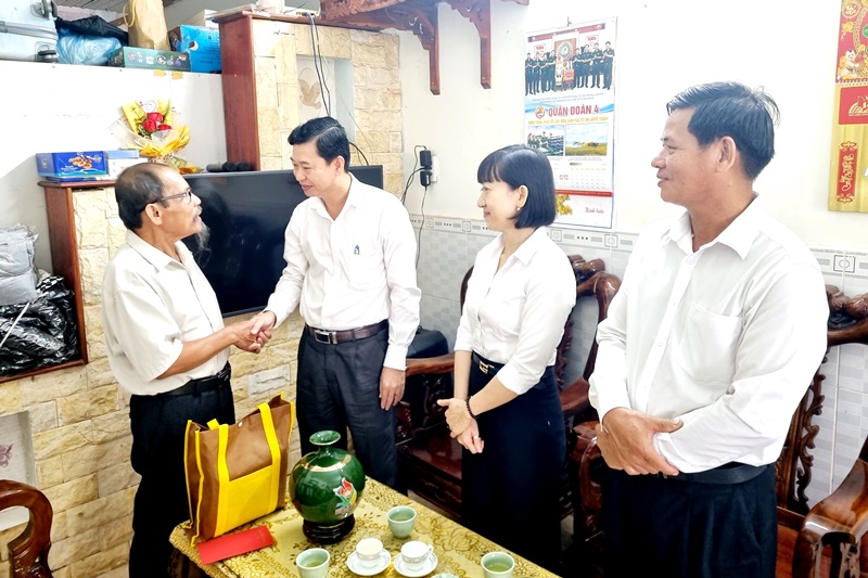 Lãnh đạo Ủy ban MTTQ huyện thăm, tặng quà Anh hùng Lực lượng vũ trang ở xã Bàu Cạn