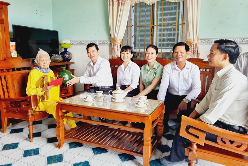 Lãnh đạo Ủy ban MTTQ huyện thăm, tặng quà Mẹ Việt Nam Anh hùng ở xã Tân Hiệp