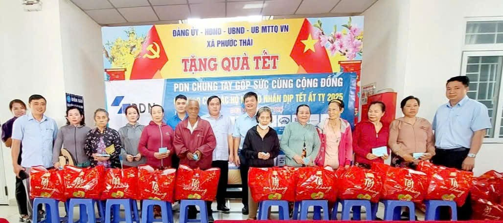 Sáng ngày 22/01/2025, Ủy ban MTTQ Việt Nam xã Phước Thái phối hợp Công ty cổ phần cảng Đồng Nai tổ chức tặng quà cho bà con có hoàn cảnh khó khăn nhân tết nguyên đán Ất Tỵ năm 2025.