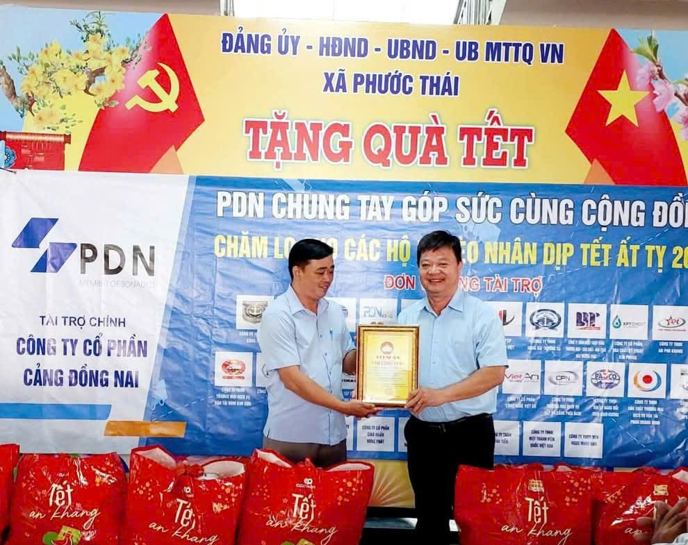 Theo đó, Công ty cổ phần cảng Đồng Nai đã trao 100 xuất quà cho các hộ gia đình có hoàn cảnh khó khăn trên địa bàn xã với tổng giá trị khoảng 50 triệu đồng. mỗi phần quà bao gồm: Kẹo, lạp xưởng, bánh ngọt, sữa hộp, nước mắm…Đây là những nghĩa cử cao đẹp nhằm lan toả truyền thống “Thương người như thể thương thân” của dân tộc Việt Nam.