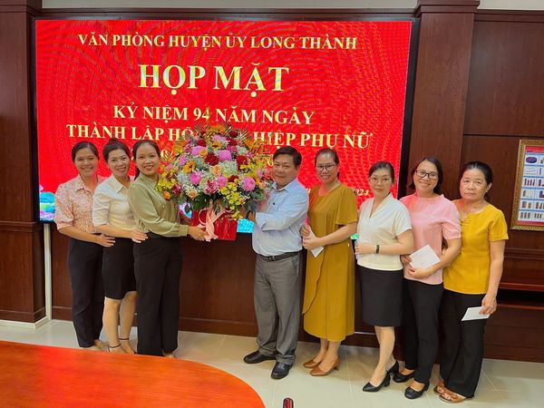 Ngày 18/10/2024, Công đoàn Văn phòng huyện ủy tổ chức gặp mặt các cán bộ, người lao động nữ Văn phòng nhân kỷ niệm 94 năm Ngày thành lập Hội Liên hiệp Phụ nữ Việt Nam (20/10/1930 - 20/10/2024). Dự và chúc mừng có đồng chí Trần Đức Lộc, HUV, Chánh Văn phòng huyện ủy.