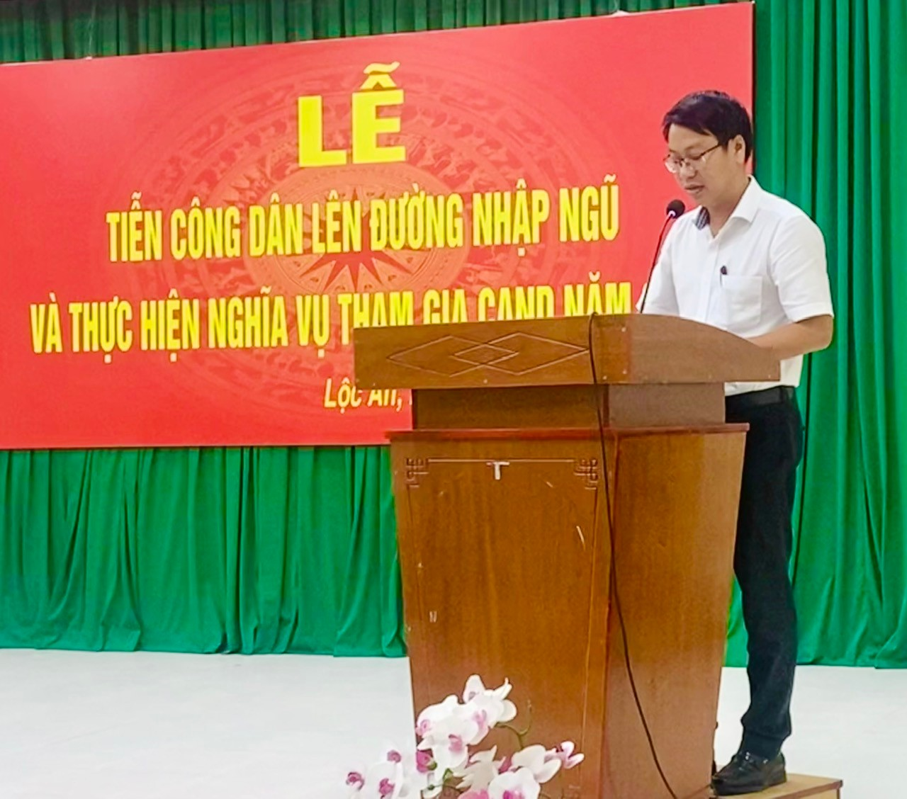 Tối ngày 11/02/2025 Hội đồng Nghĩa vụ quân sự xã Lộc An tổ chức lễ tiễn công dân lên đường nhập ngũ và thực hiện nghĩa vụ tham gia Công an Nhân dân năm 2025. Tham dự buổi lễ có đồng chí Trần Thanh Lâm - Bí thư Đảng ủy xã Lộc An, đồng chí Bùi Viết Trình - Chủ tịch UBND xã Lộc An, các đồng chí lãnh đạo UBMTTQ, các ban ngành đoàn thể xã, các đồng chí Bí thư chi bộ ấp và người thân trong gia đình có công dân lên đường nhập ngũ năm 2025.