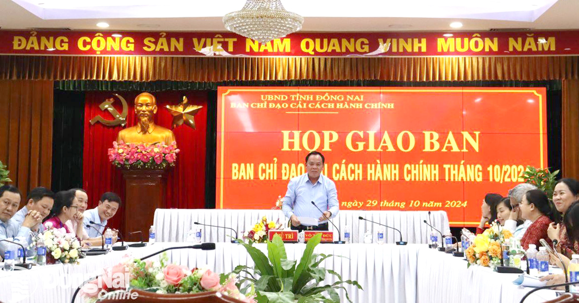 Đồng chí Võ Tấn Đức - Phó bí thư Tỉnh ủy, Chủ tịch UBND tỉnh, Trưởng ban Chỉ đạo Cải cách hành chính tỉnh phát biểu tại Hội nghị tổng kết năm 2024