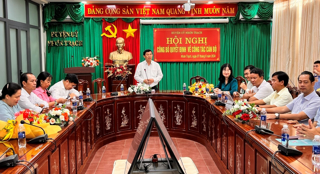 Tại Hội nghị, các đại biểu đã nghe công bố quyết định của BTV Tỉnh ủy về việc chuẩn y chức danh ủy viên BTV Huyện ủy Nhơn Trạch, nhiệm kỳ 2020-2025 đối với đồng chí Lại Như Thanh, Chỉ huy trưởng Ban Chỉ huy quân sự huyện quyết định có hiệu lực từ ngày 3-6-2024.