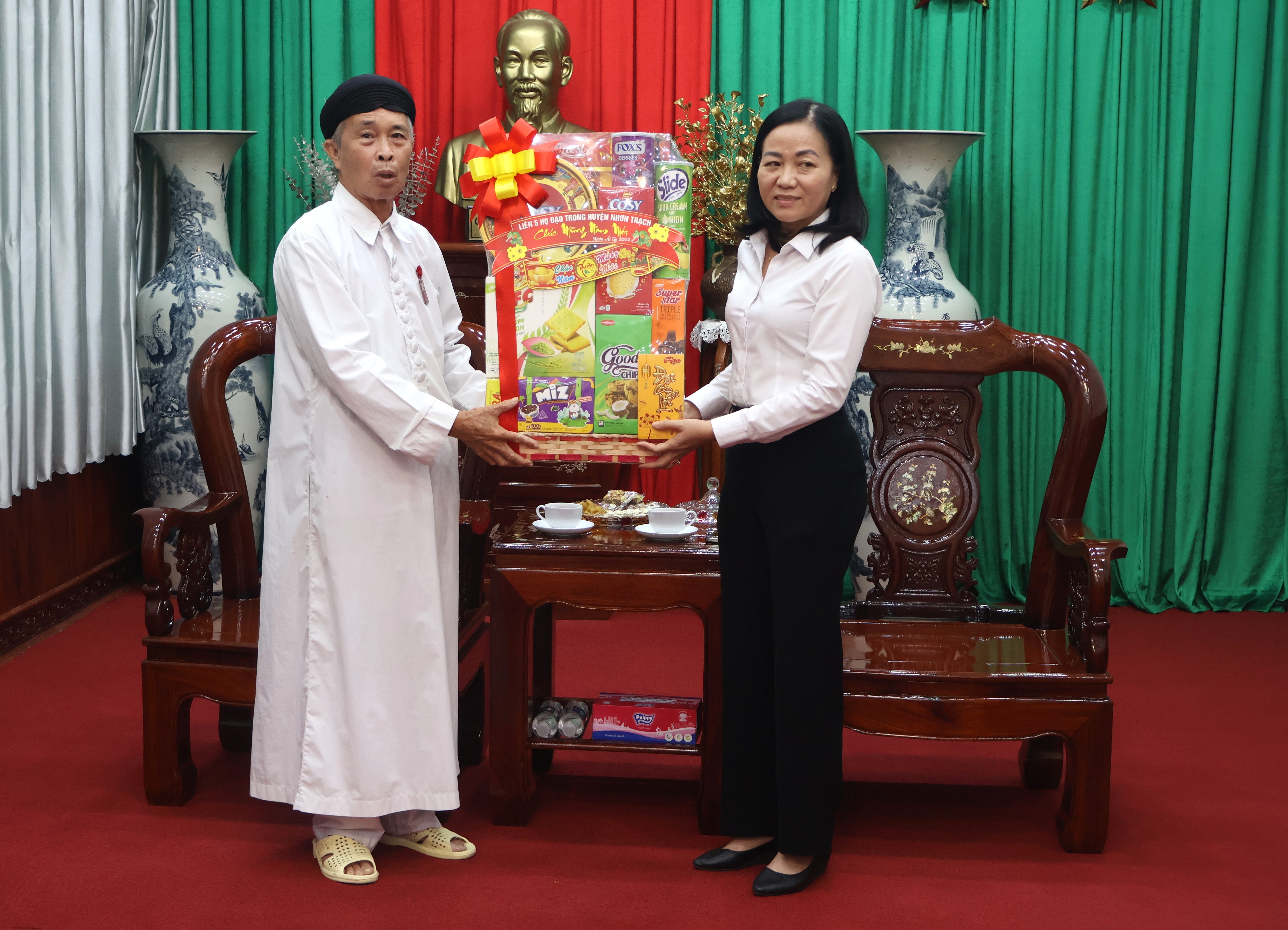 Thay mặt Ban Thường vụ Huyện uỷ, đồng chí Dương Thị Mỹ Châu – Phó Bí thư Thường trực Huyện uỷ, Chủ tịch HĐND huyện đã gửi lời chúc mừng năm mới đến các tôn giáo họ đạo Cao Đài, Phật giáo Hoà Hảo trên địa bàn huyện đón tết vui tươi, đầm ấm và hạnh phúc. Đồng thời mong muốn các tổ chức tôn giáo tiếp tục vận động các tín đồ tôn giáo cùng chung tay với cấp ủy, chính quyền từ huyện đến cơ sở thực hiện thắng lợi các mục tiêu, nhiệm vụ đã đề ra trong năm 2025; mong rằng các tôn giáo tiếp tục phát huy tinh thần yêu nước, đoàn kết dân tộc; tích cực tham gia các phong trào chăm lo cho người nghèo ở địa phương; giáo dục tín đồ của tôn giáo chấp hành tốt chủ trương, đường lối của Đảng, chính sách pháp luật của Nhà nước; chung sức, đồng lòng đóng góp tích cực cho sự phát triển của huyện nhà ngày càng ổn định, phồn vinh.