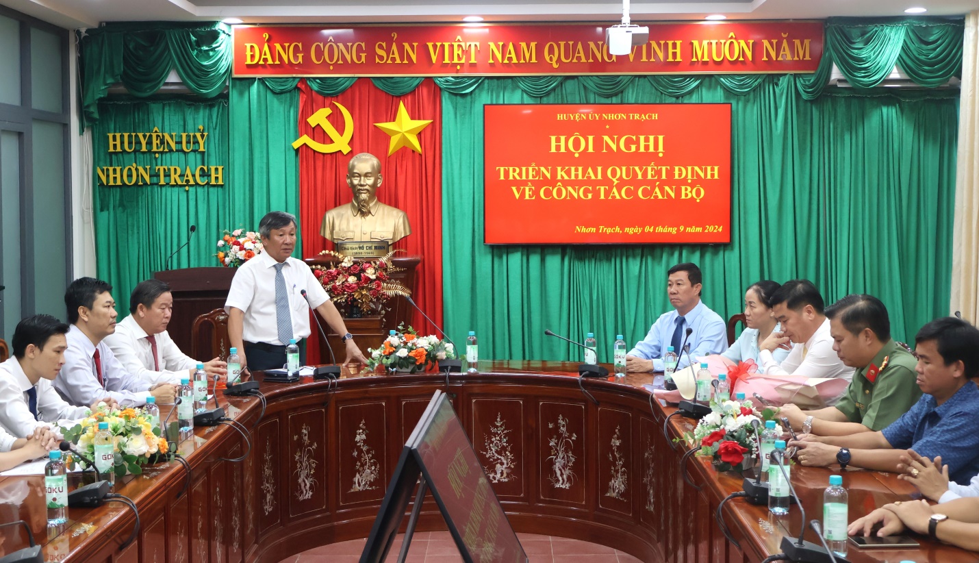 Tại Hội nghị, đồng chí Đào Văn Phước – Uỷ viên Ban Thường vụ Tỉnh uỷ, Trưởng ban Tổ chức Tỉnh uỷ đã công bố Quyết định của Ban Thường vụ Tỉnh uỷ về việc chuẩn y đồng chí Nguyễn Thế Phong – Uỷ viên BTV Huyện uỷ, Quyền Chủ tịch UBND huyện Nhơn Trạch giữ chức Phó Bí thư Huyện uỷ Nhơn Trạch, nhiệm kỳ 2020 – 2025. Quyết định có hiệu lực từ ngày 04/9/2024.