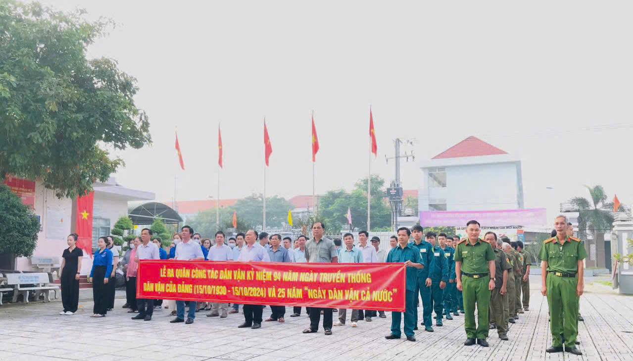Nằm trong chuỗi các hoạt động chào mừng kỷ niệm ngày truyền thống công tác dân vận của Đảng, các xã, thị trấn đã tổ chức họp mặt ôn lại truyền thống 94 năm ngày dân vận của Đảng. Đồng thời, tổ chức các buổi đối thoại với dân về công tác dân vận của Đảng. Ngày 12/10/2024, 12/12 xã, thị trấn đã tổ chức lễ phát động và đồng loạt ra quân làm công tác dân vận giúp dân với nhiều hoạt động, việc làm thiết thực, đạt kết quả như trao tặng và xây dựng 09 căn nhà tình thương; phát quang, dọn dẹp vệ sinh môi trường, nạo vét, khai thông cống rãnh; tu sửa, nâng cấp, xây dựng 21 tuyến đường với tổng chiều dài 6km; nạo vét, khai thông hệ thống mương thoát nước với chiều dài 5km; tặng 1.140 phần quà cho người nghèo, gia đình chính sách; phát 137 thẻ BHYT; khám và cấp thuốc cho 950 đối tượng; tặng và trồng 2.584 cây xanh và 350 giống vật nuôi; trao tặng 10 chiếc xe đạp, 249 phần học bổng; tổ chức tuyên truyền công tác phòng cháy chữa cháy và trao 78 bình chữa cháy cho các hộ nghèo, cận nghèo; vận động Quỹ đền ơn đáp nghĩa và Quỹ cứu trợ cho đồng bào miền Bắc; gắn 109 bóng đèn chiếu sáng và lắp đặt 36 camera an ninh ở một số tuyến đường trọng điểm; tổ chức giao lưu các hoạt động thể thao;… với tổng trị giá các hoạt động trên 4,3 tỷ đồng với 8.444 lượt người dự.