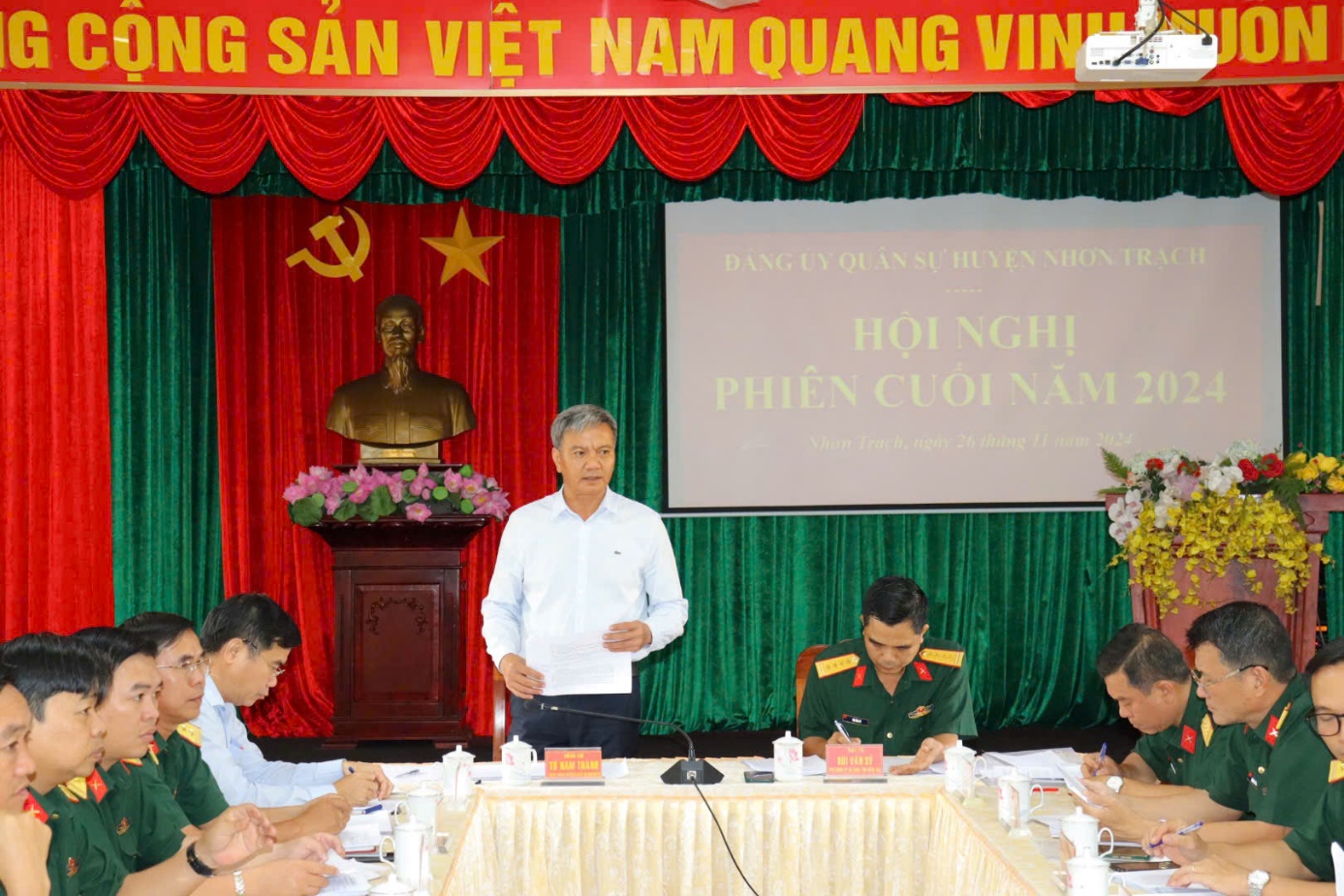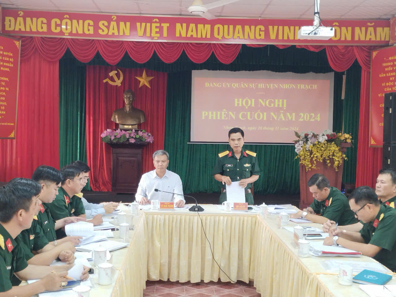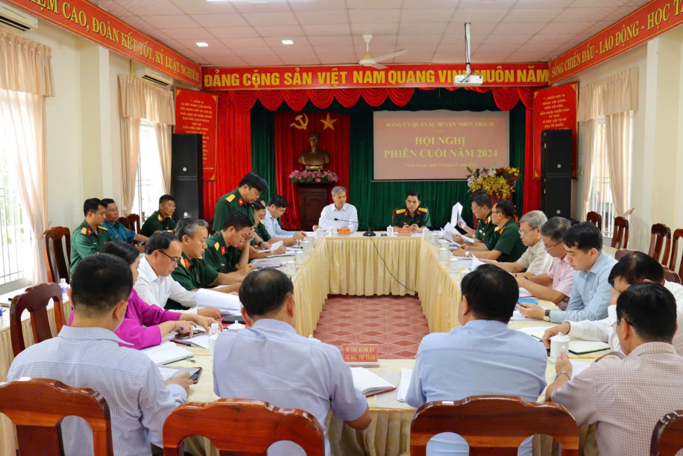 Chiều ngày 26/11/2024, Đảng ủy Quân sự huyện Nhơn Trạch tổ chức hội nghị phiên cuối năm 2024. Tham dự Hội nghị có đồng chí Đại tá Bùi Văn Sỹ - Ủy viên Ban Thường vụ Đảng ủy, Phó Chính ủy, Bộ Chỉ huy Quân sự tỉnh Đồng Nai; đồng chí Từ Nam Thành - Tỉnh ủy viên, Bí thư Huyện ủy, Bí thư Đảng ủy Quân sự huyện chủ trì hội nghị; đồng chí Nguyễn Thế Phong - Phó Bí thư Huyện ủy, Đảng ủy viên, Chủ tịch UBND huyện cùng Thủ trưởng các Phòng, ban trực thuộc Bộ CHQS tỉnh; Lãnh đạo các ban đảng, Văn phòng Huyện ủy; Bí thư Đảng ủy các xã, thị trấn và các đồng chí trong Đảng ủy, Ban Chỉ huy Quân sự huyện.