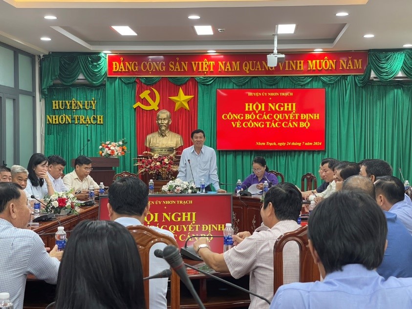 Chiều ngày 24/7/2024, Ban Thường vụ Huyện ủy đã tổ chức Hội nghị công bố các quyết định công tác cán bộ. Hội nghị do đồng chí Lê Thành Mỹ, TUV, Bí thư Huyện ủy chủ trì, cùng dự hội nghị có đồng chí Dương Thị Mỹ Châu, Phó Bí thư Huyện ủy, Chủ tịch Hội đồng nhân dân huyện; các đồng chí Ủy viên Ban Thường vụ Huyện ủy; tập thể lãnh đạo Phòng Văn hóa và Thông tin, Phòng Lao động Thương binh và xã hội, Phòng Kinh tế, Ban Quản lý dự án; Ban Thường vụ Đảng ủy các xã Phú Hội, Phước Thiền, Long Tân và thị trấn hiệp Phước.