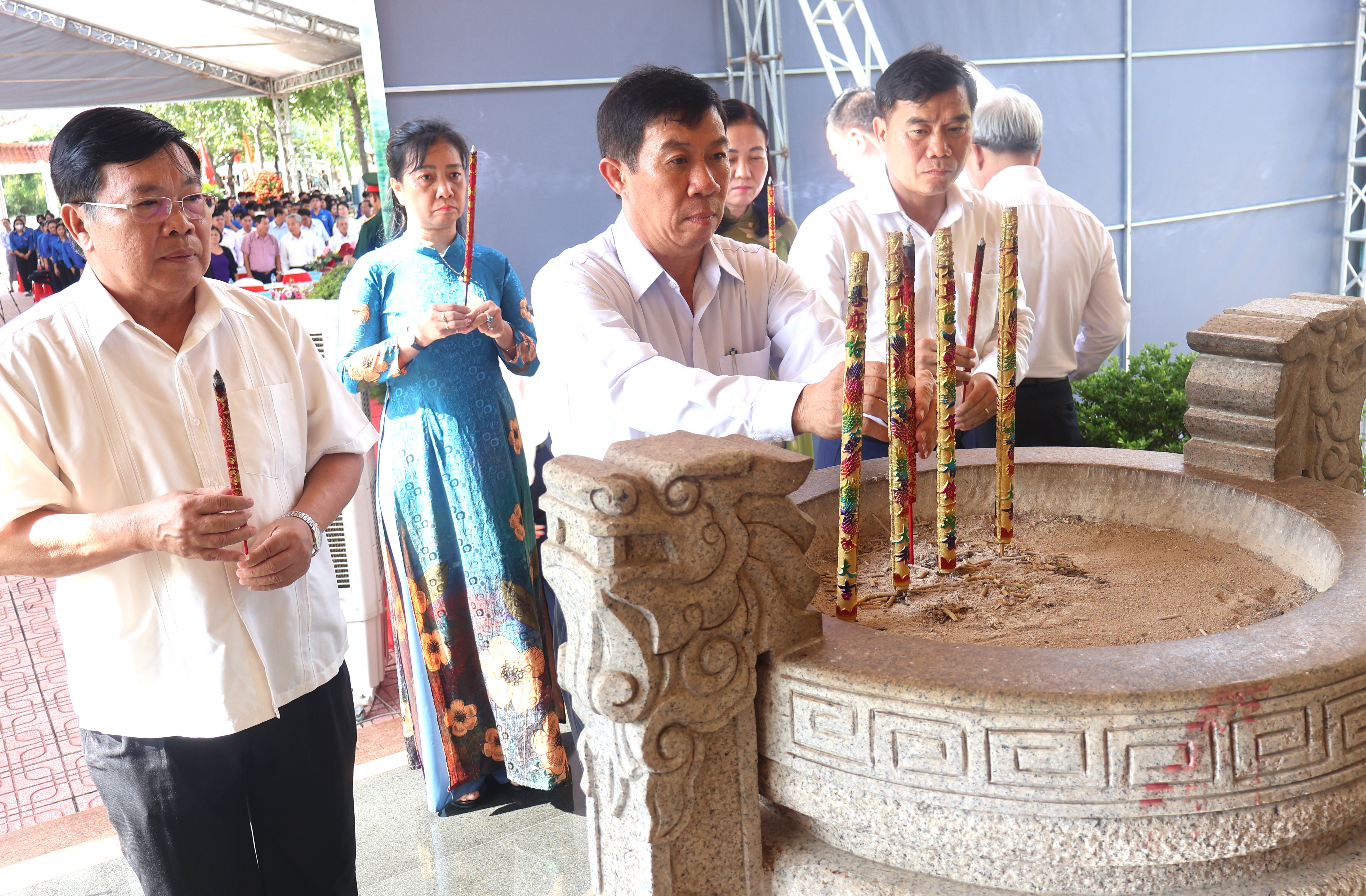 Cũng trong buổi lễ, các đồng chí lãnh đạo Tỉnh, huyện và đại biểu tham dự đã dâng hương và dành một phút mật niệm cho 536 đồng bào ngã xuống trong vụ thảm sát Giồng Sắn 60 năm trước.