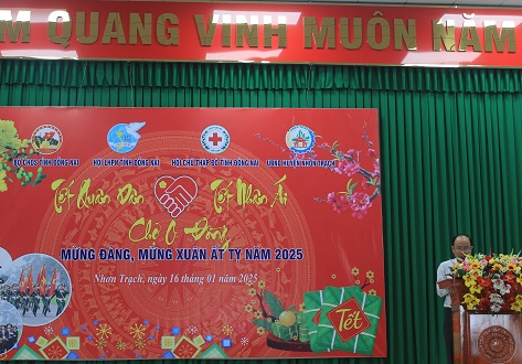 Sáng ngày 16/01/2025, tại Trung tâm VHTT-HTCĐ xã Long Thọ, UBND huyện Nhơn Trạch phối hợp với Bộ CHQS tỉnh, Hội LHPN tỉnh và Hội Chữ Thập đỏ tỉnh tổ chức Chương trình “Tết quân dân, Tết nhân ái, chợ 0 đồng” mừng Đảng, mừng Xuân Ất Tỵ.