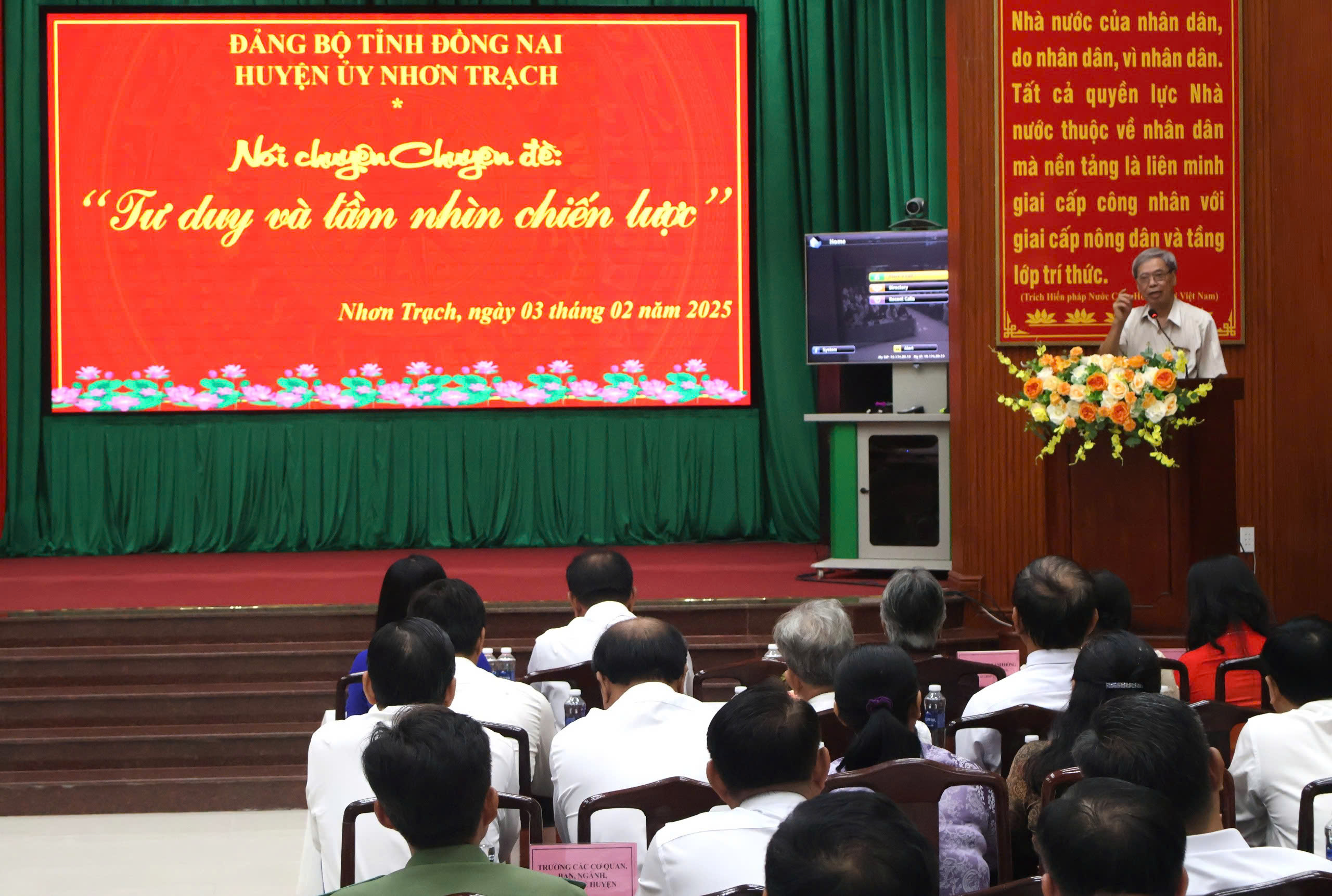 Sáng ngày 03/02/2025, Huyện uỷ Nhơn Trạch đã tổ chức họp mặt kỷ niệm 95 năm Ngày thành lập Đảng Cộng sản Việt Nam (03/02/1930 – 03/02/2025). Dự buổi họp mặt có các đồng chí: Từ Nam Thành – Tỉnh ủy viên, Bí thư Huyện ủy; Quách Hữu Đức – nguyên Tỉnh ủy viên, nguyên Bí thư Huyện ủy; Dương Thị Mỹ Châu – Phó bí thư Thường trực Huyện ủy, Chủ tịch HĐND Huyện; Nguyễn Hữu Nghị - nguyên Phó Bí thư Thường trực Huyện ủy; Nguyễn Văn Điệp – nguyên Tỉnh ủy viên, nguyên GĐ Sở GT-VT tỉnh Đồng Nai, nguyên Phó Bí thư Huyện ủy, nguyên Chủ tịch UBND huyện; Phạm Thị Kiều Thu – UVTV, Chủ tịch UBMTTQ VN huyện; Nguyễn Thị Ánh Hồng – nguyên UVTV, nguyên Chủ tịch UBMTTQ VN huyện. Dự buổi họp mặt còn có các đồng chí Ủy viên Ban Thường vụ Huyện ủy, Ủy viên BCH Đảng bộ huyện (khóa VI); nguyên Ủy viên Ban thường vụ các khóa; Cá đồng chí Trưởng các cơ quan, ban, ngành, đoàn thể huyện; Các đồng chí bí thư các chi, đảng bộ cơ sở; Bí thư Đảng ủy, Chủ tịch HĐND, Chủ tịch UBND, Chủ tịch UB MTTQ Việt Nam các xã, thị trấn; cán bộ và chuyên viên các ban đảng và Văn phòng Huyện ủy; chuyên viên văn phòng HĐND và UBND huyện,…