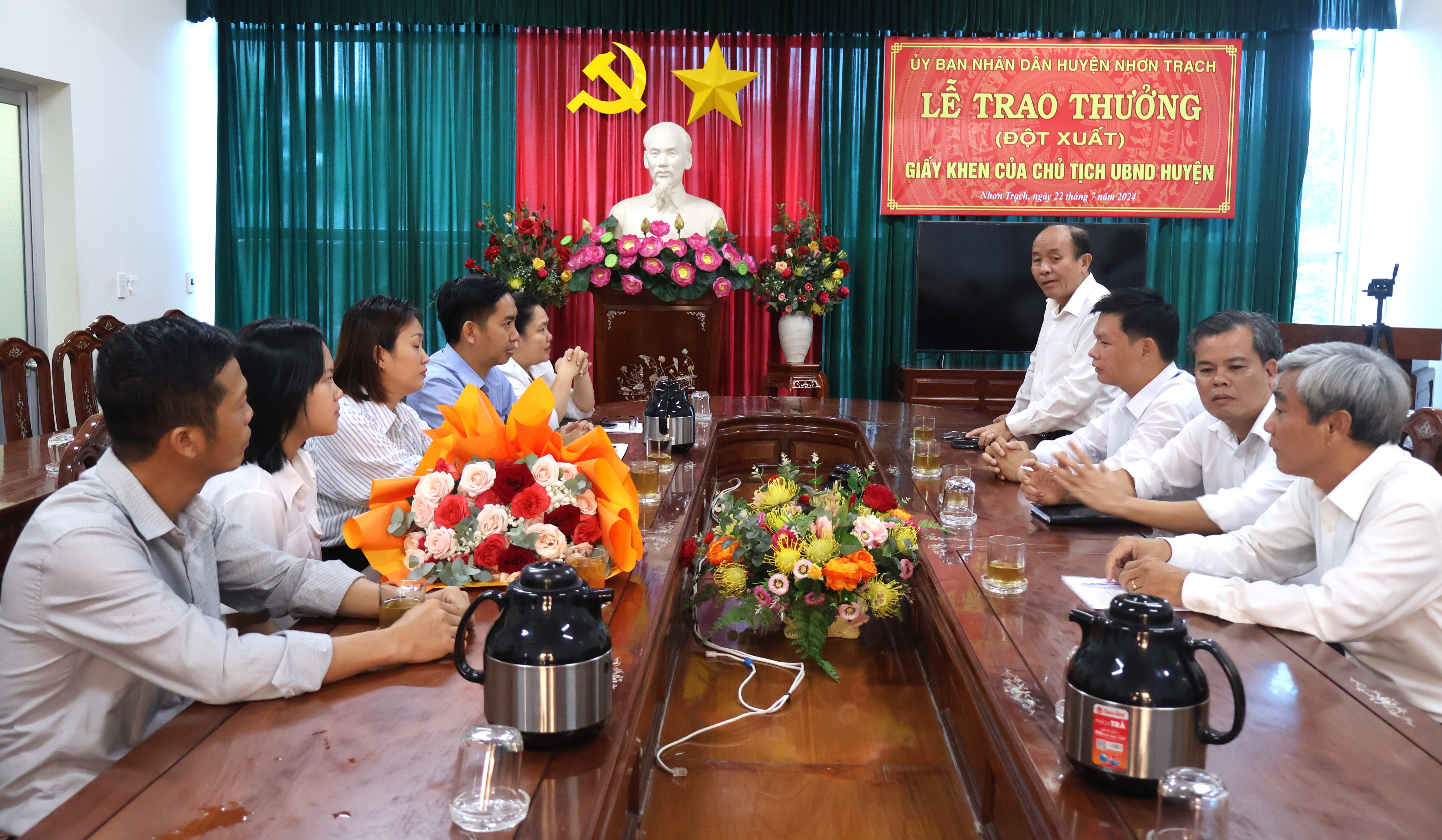 Chiều ngày 22/7/2024, Lãnh đạo Huyện uỷ - UBND huyện Nhơn Trạch đã khen thưởng (đột xuất) cho em Phạm Ngọc Quỳnh Như – học sinh lớp 12A8 trường THPT Phước Thiền đã xuất sắc khi vừa là thí sinh có điểm cao nhất Kỳ thi tốt nghiệp THPT năm 2024 của tỉnh vừa là thí sinh có điểm cao nhất tổ hợp xét tuyển Đại học ở khối D.