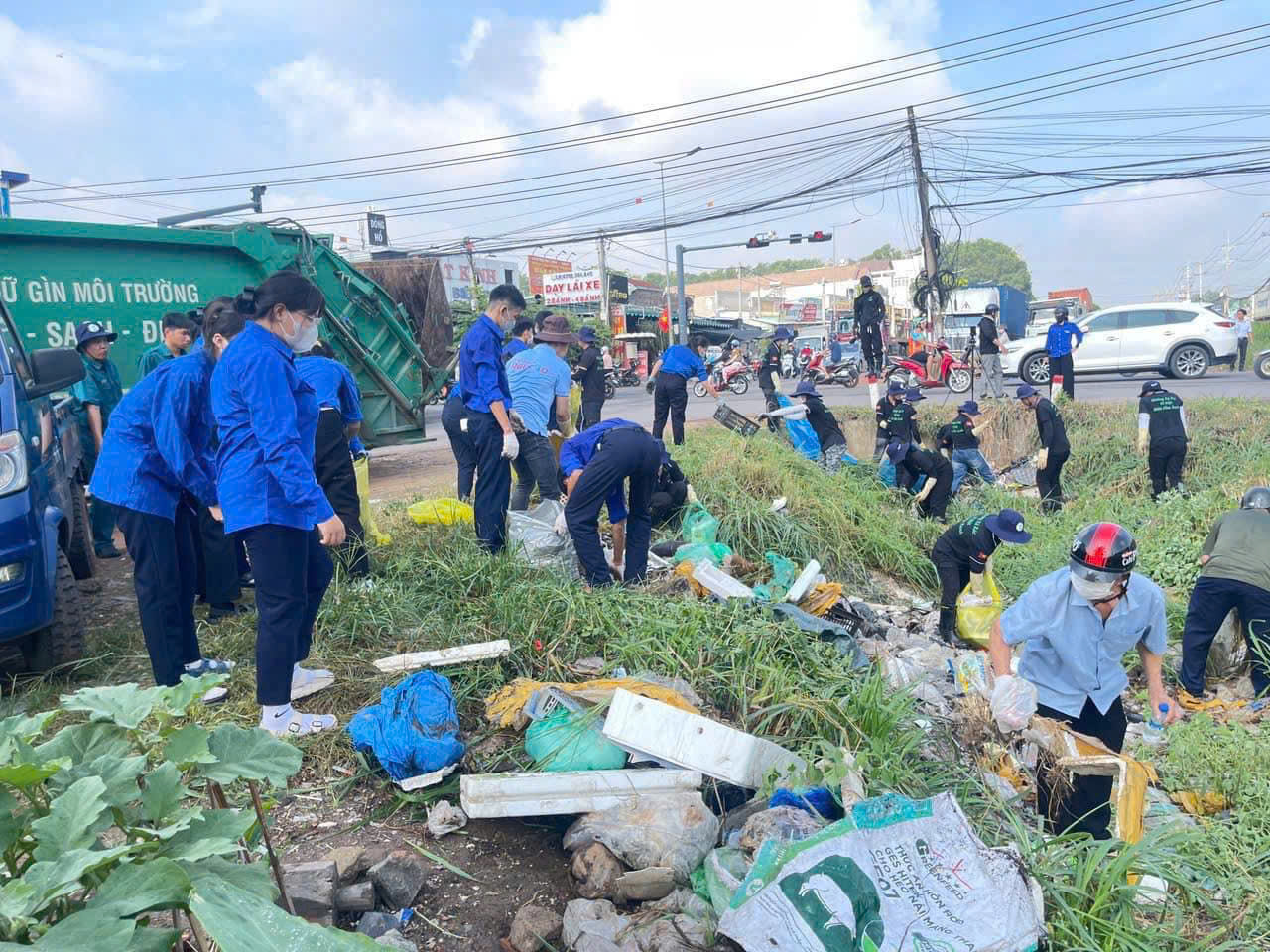 Các đoàn thực hiện dọn dẹp vệ sinh tại khu vực Ngã tư Hiệp Phước