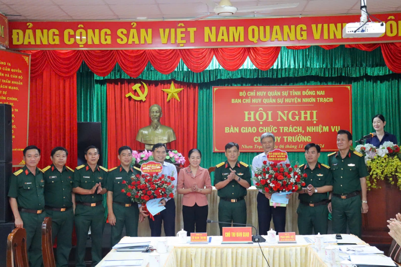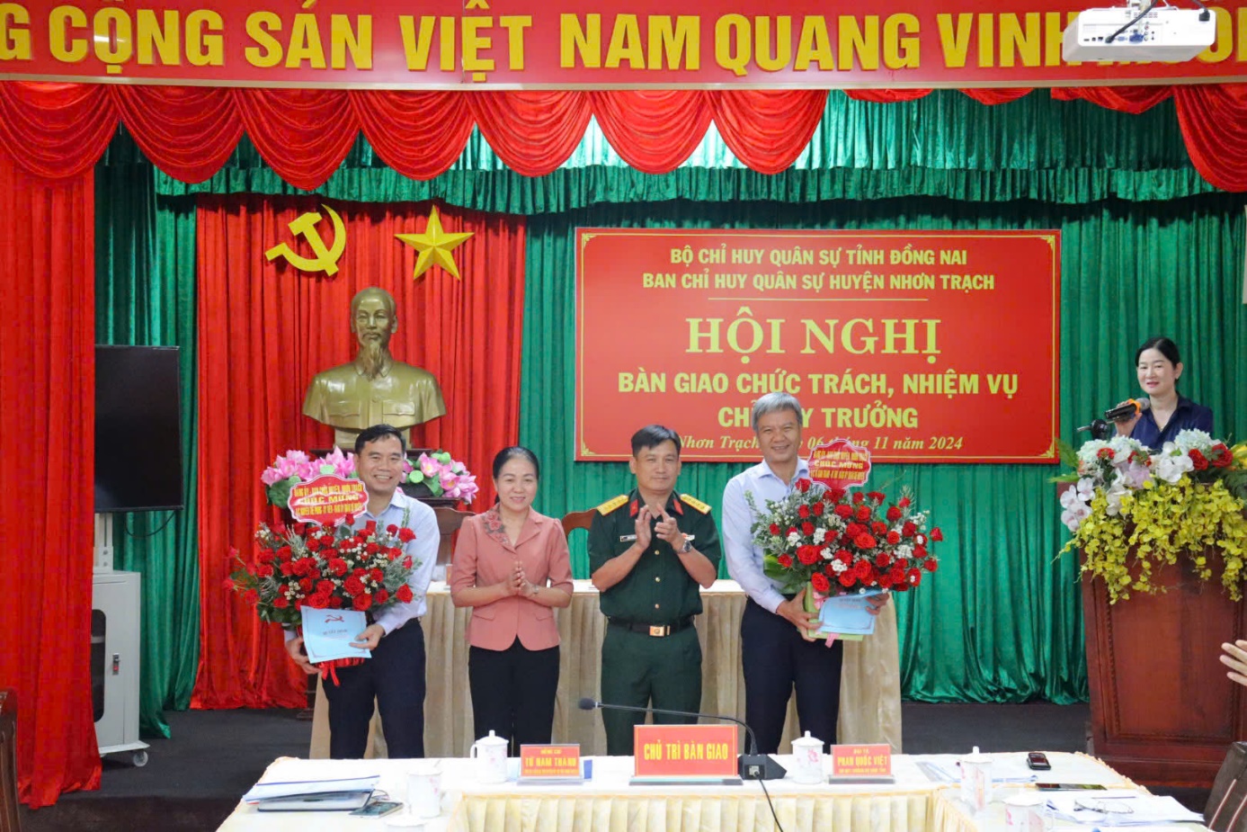 Chiều 6/11/2024, trong Hội nghị bàn giao chức vụ Chỉ huy trưởng Ban Chỉ huy quân sự huyện Nhơn Trạch. Huyện ủy Nhơn Trạch đã tổ chức công bố, trao Quyết định chỉ định tham gia Ban Chấp hành Đảng bộ Quân sự huyện Nhiệm kỳ 2020-2025. Tham dự Hội nghị có Đại tá Phan Quốc Việt, Phó Bí thư Đảng ủy, Chỉ huy trưởng, Bộ Chỉ huy quân sự tỉnh Đồng Nai; đồng chí Từ Nam Thành - Tỉnh ủy viên, Bí thư Huyện ủy; đồng chí Dương Thị Mỹ Châu - Phó Bí thư Thường trực Huyện ủy, Chủ tịch Hội đồng nhân dân huyện; đồng chí Nguyến Thế Phong - Phó bí thư Huyện ủy, Chủ tịch UBND huyện.