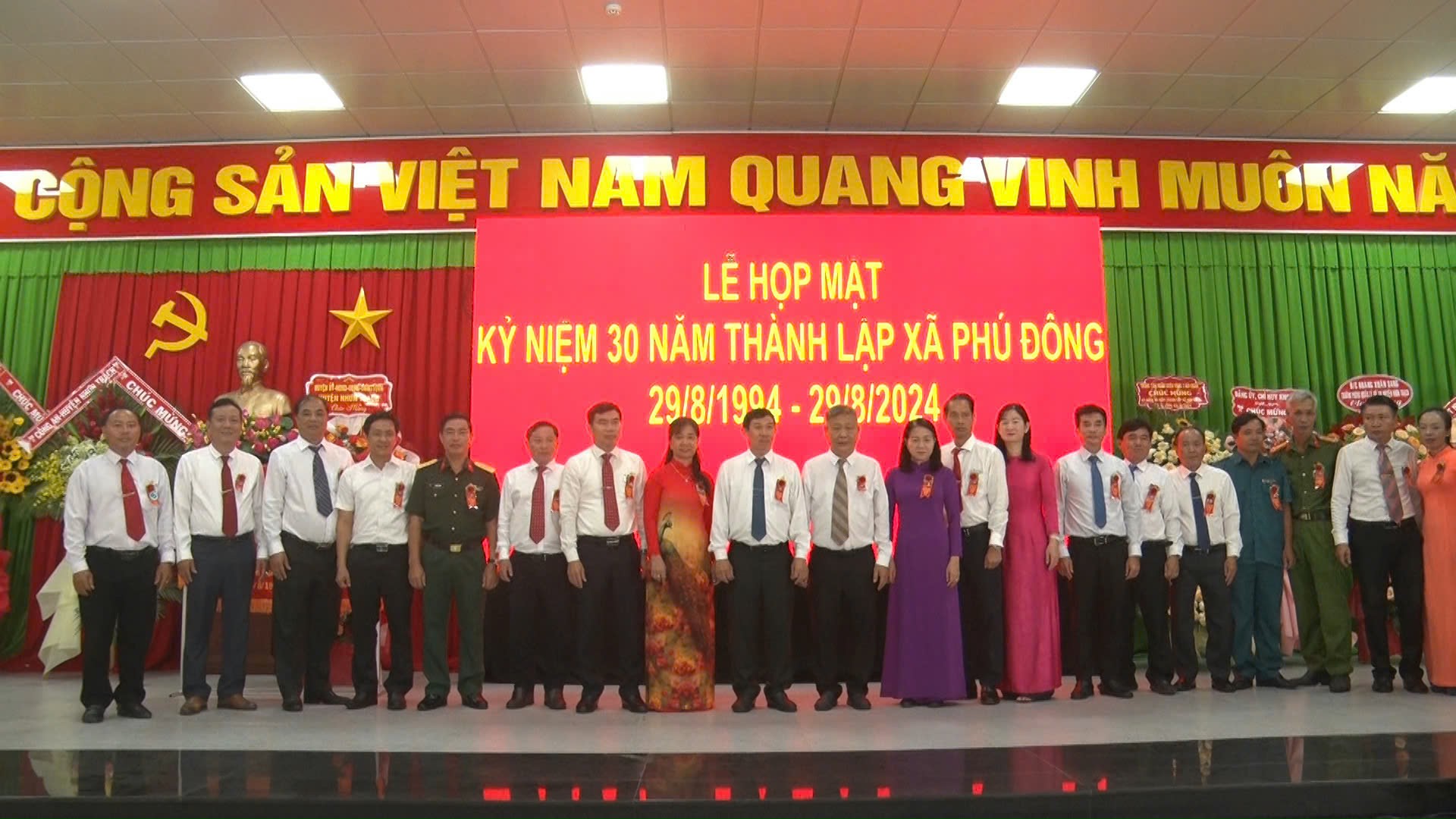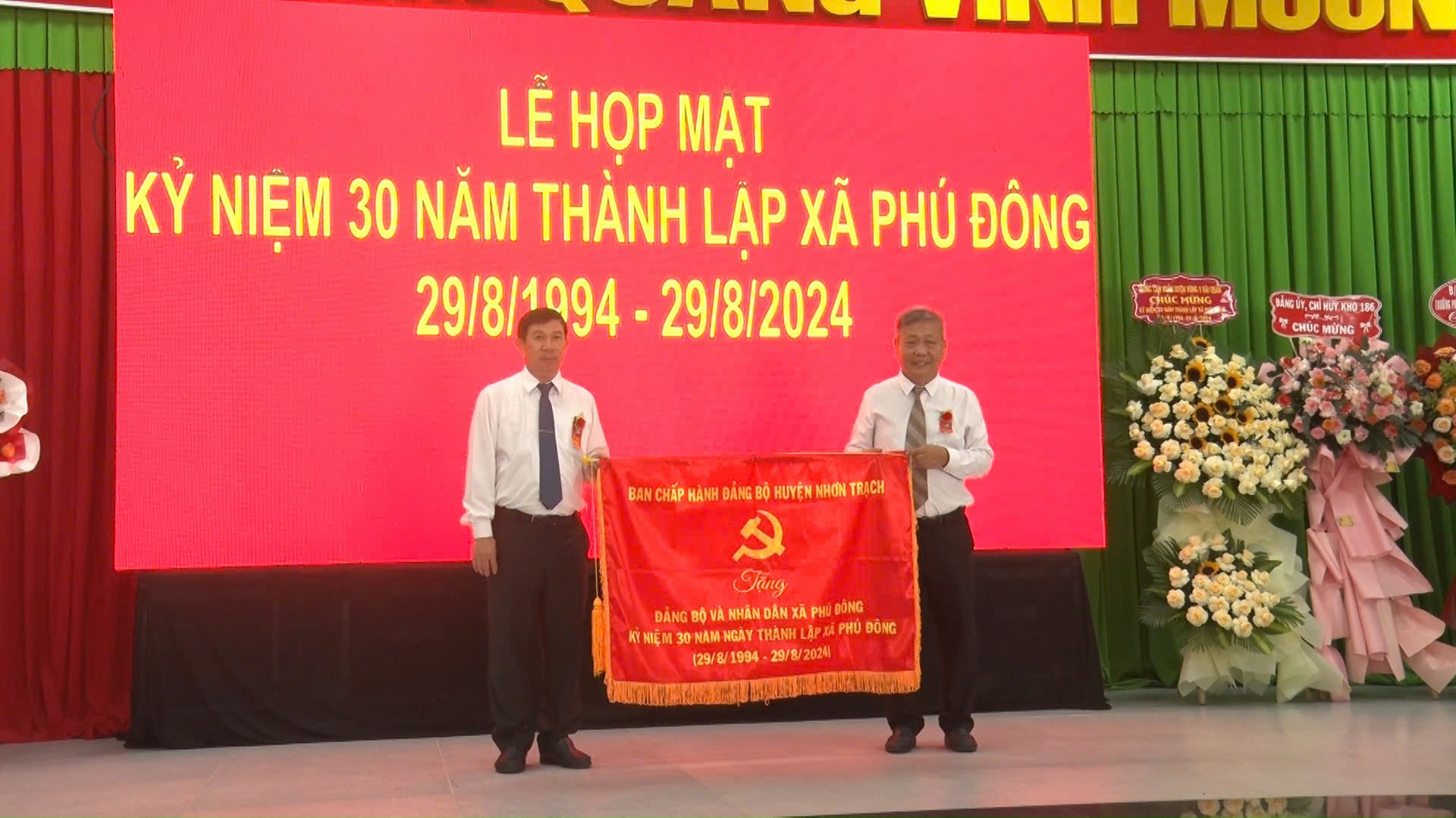 Ngày 26/8/2024, xã Phú Đông, huyện Nhơn Trạch long trọng tổ chức lễ kỷ niệm 30 thành lập (1994 -2024). Dự Lễ kỷ niệm có đồng chí Lê Thành Mỹ - TUV – Bí thư Huyện ủy; đồng chí Dương Thị Mỹ Châu – Phó Bí thư Thường trực Huyện ủy – Chủ tịch HĐND huyện; đồng chí Nguyễn Thế Phong – Quyền Chủ tịch UBND huyện, cùng các đồng chí trong Ban Thường vụ Huyện ủy; lãnh đạo UBND huyện; lãnh đạo 12 xã Thị trấn, cùng tập thể cán bộ và nhân dân xã Phú Đông.