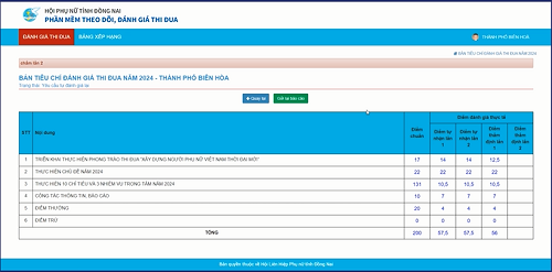 Ngày 26/6/2024, tại Hội nghị sơ kết đánh giá kết quả giữa nhiệm kỳ thực hiện Nghị quyết Đại hội đại biểu Hội LHPN tỉnh Đồng Nai lần thứ X, nhiệm kỳ 2021-2026, Ban Chấp hành Hội LHPN tỉnh đã ra mắt phần mềm theo dõi và đánh giá thi đua trong hệ thống Hội tỉnh Đồng Nai theo Kế hoạch số 182/KH-BTV của Ban Thường vụ Hội LHPN tỉnh. Ngày 29/7/2024 Hội LHPN tỉnh đã tổ chức buổi tập huấn hướng dẫn sử dụng phần mềm theo dõi và đánh giá thi đua trong hệ thống Hội cho 100% cán bộ Hội cấp tỉnh, huyện, thành phố. Ghi nhận tại buổi tập huấn, hầu hết cán bộ Hội sau khi lắng nghe và theo dõi các thao tác đều cho rằng phần mềm có giao diện thân thiện, dễ sử dụng, rất phù hợp với nhu cầu hiện nay của đơn vị và đề xuất sử dụng bắt đầu từ năm 2024 cho đến hết nhiệm kỳ. Sau năm 2026 sẽ tiến hành tổng kết, rút kinh nghiệm, đánh giá tính khả thi để nhân rộng đến các cấp Hội cơ sở trong giai đoạn tiếp theo.