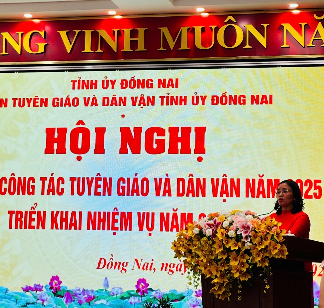 Chiều 23-12, tại Trụ sở Tỉnh ủy, trong khuôn khổ Hội nghị tổng kết công tác tuyên giáo và dân vận năm 2025, triển khai nhiệm vụ năm 2026, Ban Tuyên giáo và Dân vận Tỉnh ủy Đồng Nai đã tổ chức phát động phong trào thi đua trong toàn ngành. Đồng chí Nguyễn Thị Loan, Phó Trưởng Ban Tuyên giáo và Dân vận Tỉnh ủy thay mặt tập thể lãnh đạo Ban, chủ trì phát động phong trào thi đua với quyết tâm tạo chuyển biến rõ nét về chất lượng, hiệu quả công tác ngay từ đầu năm 2026.