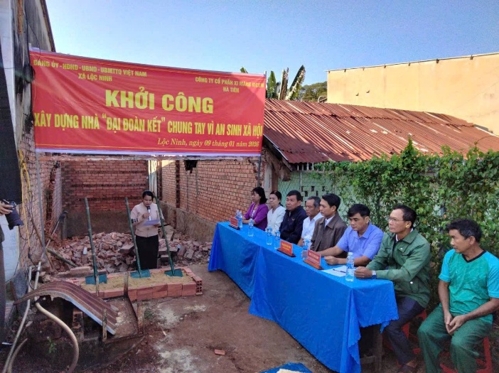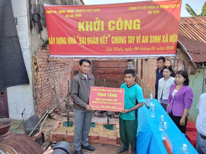 Ngày 09-01-2026, tại thôn Ninh Phước, Đảng ủy – HĐND – UBND – Ủy ban MTTQ Việt Nam xã Lộc Ninh phối hợp với Công ty Cổ phần VICEM Hà Tiên tổ chức lễ khởi công xây dựng nhà Đại đoàn kết cho hộ ông Huỳnh Văn Lê, là gia đình có hoàn cảnh khó khăn về nhà ở trên địa bàn xã.