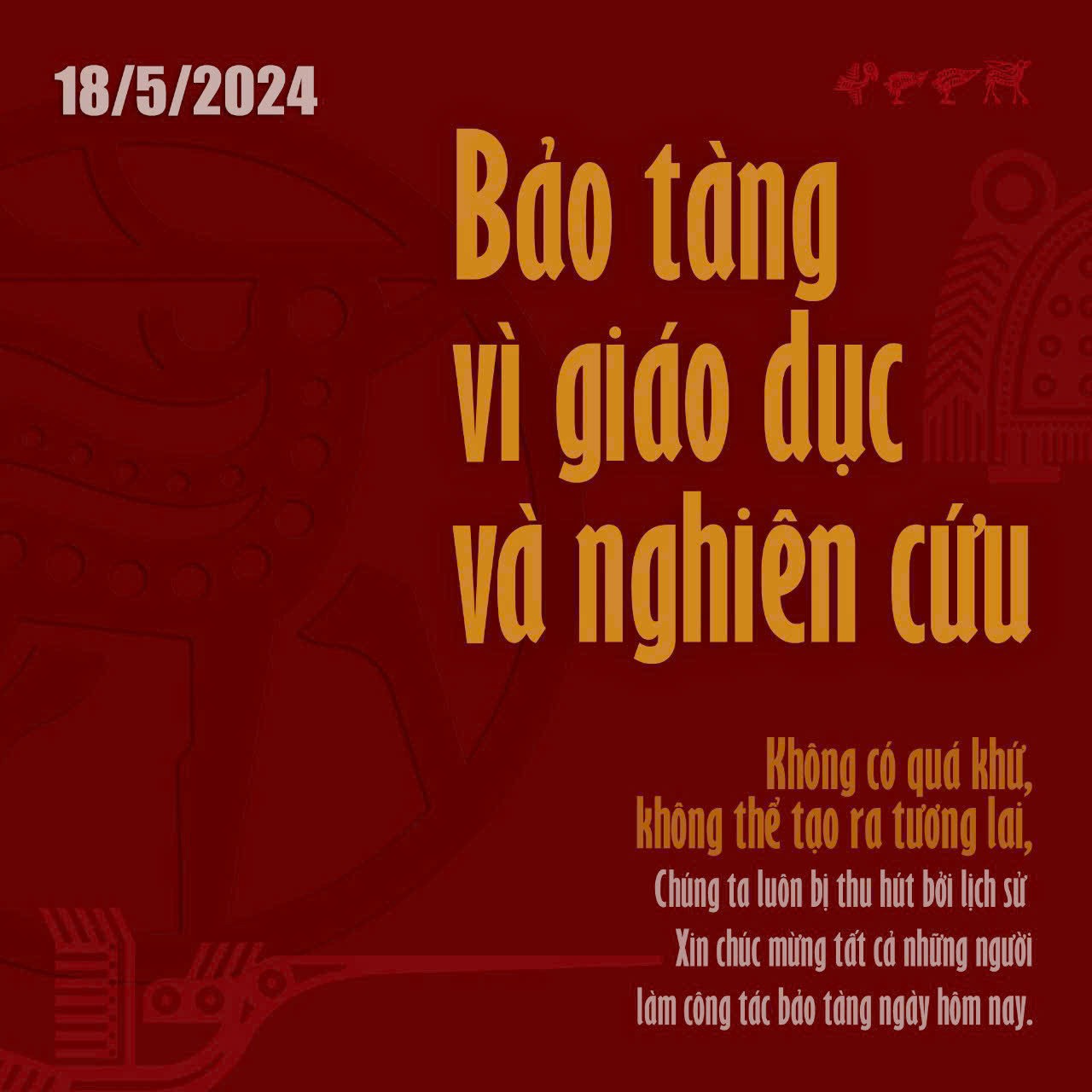 Chủ đề Ngày Quốc tế Bảo tàng năm 2024 (18/5) được ICOM đưa ra là “Bảo tàng vì giáo dục và nghiên cứu”. Đây là dịp để nhấn mạnh vai trò then chốt của các thiết chế văn hóa trong việc cung cấp một trải nghiệm giáo dục toàn diện. Trong đó, Bảo tàng có vai trò như là các trung tâm khuyến khích học tập, thúc đẩy sự tìm tòi, sáng tạo. Từ nghệ thuật và lịch sử đến khoa học và công nghệ, Bảo tàng là không gian quan trọng nơi giáo dục và nghiên cứu gặp nhau để hình thành hiểu biết của chúng ta về thế giới. Ngày Quốc tế bảo tàng 2024, ICOM sẽ tập trung các hoạt động vào những mục tiêu sau: Giáo dục chất lượng - Đảm bảo tính công bằng và bao hàm trong giáo dục chất lượng, thúc đẩy cơ hội học tập suốt đời cho tất cả mọi người; Công nghiệp, đổi mới và hạ tầng - Xây dựng hạ tầng chống chọi, thúc đẩy công nghiệp bền vững, bao gồm và khuyến khích đổi mới. ICOM khuyến khích nhìn nhận lại về giáo dục nhằm hướng tới một tương lai, trong đó, sự đổi mới hòa quyện với truyền thống, cùng nghiên cứu, chia sẻ kiến thức vượt qua mọi rào cản. Đồng thời, khuyến khích những người yêu quý di sản văn hóa cùng bảo tàng khám phá sự giàu có về kiến thức mà các bảo tàng có để cung cấp và cùng nhau xây dựng một thế giới thông tin và bao trùm hơn.