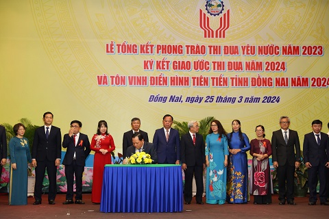 Sáng 25-3, Ủy ban nhân dân tỉnh tổ chức Lễ tổng kết phong trào thi đua yêu nước năm 2023, ký kết giao ước thi đua năm 2024 và tôn vinh điển hình tiên tiến tỉnh Đồng Nai năm 2024. Tham dự có đồng chí Hồ Thanh Sơn - Phó Bí thư Thường trực Tỉnh ủy; đồng chí Võ Tấn Đức - UVTV, Quyền Chủ tịch Ủy ban nhân dân tỉnh, Chủ tịch Hội đồng thi đua khen thưởng tỉnh và các đồng chí trong Ban thường vụ Tỉnh ủy, Ban chấp hành Đảng bộ tỉnh; lãnh đạo các sở, ban, ngành, huyện, thành phố cùng 133 tập thể, cá nhân xuất sắc, điển hình tiên tiến của tỉnh đã cùng dự.