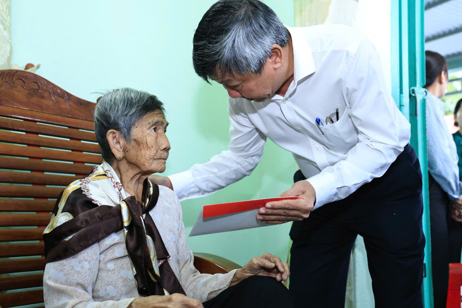 Đồng chí Hồ Thanh Sơn, Phó Bí thư Thường trực Tỉnh ủy, phụ trách Đảng bộ tỉnh thăm, chúc Tết Mẹ Việt Nam anh hùng Hồ Thị Vàng