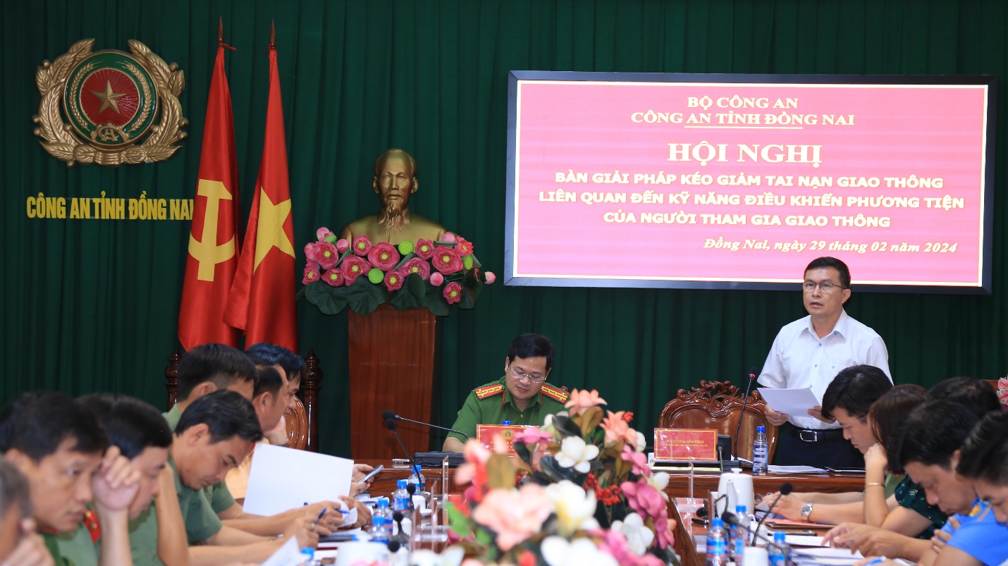 Sáng ngày 29/02/2024, Đại tá Trần Anh Sơn - Phó Giám đốc Công an tỉnh chủ trì hội nghị phân tích, đánh giá nguyên nhân dẫn đến TNGT và tiếp tục phối hợp thực hiện đồng bộ các giải pháp nhằm kéo giảm TNGT liên quan đến kỹ năng điều khiển phương tiện của người tham gia giao thông. Dự hội nghị còn có các đồng chí: Dương Văn Đông, Phó Giám đốc Sở Giao thông vận tải tỉnh; Não Thiên Minh, Phó Ban An toàn giao thông tỉnh cùng đại diện lãnh đạo Sở Giáo dục và đạo tạo, Công an các đơn vị, địa phương; các Đội, Trạm trực thuộc Phòng Cảnh sát giao thông (CSGT); các Trung tâm đào tạo và sát hạch lái xe trên địa bàn tỉnh Đồng Nai.