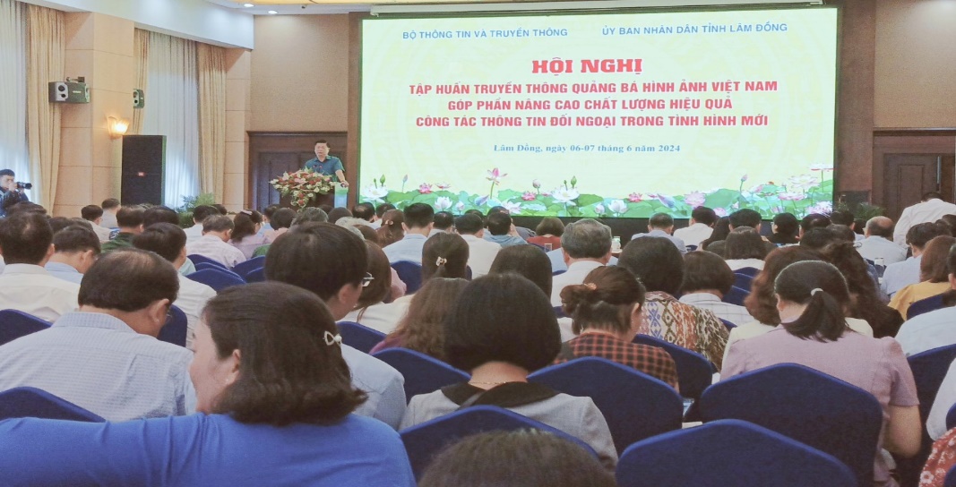 Ngày 06-07/6/2024, Bộ Thông tin và Truyền thông phối hợp với UBND tỉnh Lâm Đồng tổ chức Hội nghị tập huấn truyền thông quảng bá hình ảnh Việt Nam, góp phần nâng cao chất lượng, hiệu quả công tác TTĐN trong tình hình mới tại thành phố Đà Lạt. Tham dự Hội nghị có đồng chí Nguyễn Thanh Lâm, Thứ trưởng Bộ Thông tin và Truyền thông, đại diện lãnh đạo và cán bộ các bộ, ngành; ban tuyên giáo, các sở, ngành của 63 tỉnh, thành trong cả nước. Qua đó, góp phần nâng cao nhận thức, trình độ chuyên môn nghiệp vụ TTĐN cho đội ngũ chuyên trách làm công tác TTĐN của các bộ, ngành, địa phương.