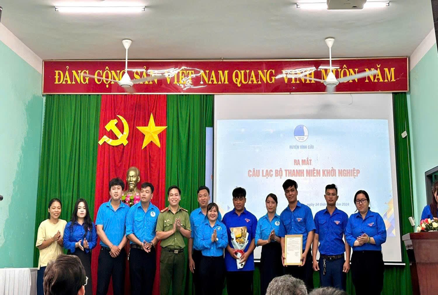 Không chỉ giúp đỡ đoàn viên thanh niên giảm bớt khó khăn về kinh tế trong cuộc sống, “Câu lạc bộ (CLB) thanh niên khởi nghiệp” còn là nơi các thành viên chia sẻ kinh nghiệm, tìm hướng làm ăn hiệu quả, đẩy mạnh phong trào phát triển kinh tế tại địa phương. Nhằm tạo ra môi trường sinh hoạt lành mạnh và tạo mối liên kết phát triển về kinh tế giữa đoàn viên, thanh niên có ý chí vươn lên làm giàu. Huyện đoàn - Hội Liên hiệp Thanh niên (LHTN) Việt Nam huyện Vĩnh Cửu thành lập “CLB thanh niên khởi nghiệp” trực thuộc Huyện đoàn - Ủy ban Hội LHTN Việt Nam huyện Vĩnh Cửu. Ra mắt CLB với 10 thành viên, trong đó, Ban Chủ nhiệm gồm 03 thành viên, Chủ nhiệm CLB bạn Ngô Trung Nghĩa, Ủy viên Ủy ban Hội LHTN huyện; Phó Chủ nhiệm Trịnh Ngọc Yến Nhi, Ủy viên Ủy ban Hội LHTN huyện, là thanh niên có mô hình kinh doanh Sen đá tại xã Thạnh Phú (huyện Vĩnh Cửu) và Phó Chủ nhiệm CLB Nguyễn Hoàng Huy, PCT Hội LHTN Việt Nam xã Bình lợi, là thanh niên có mô hình kinh doanh dịch vụ trang trí đám cưới.