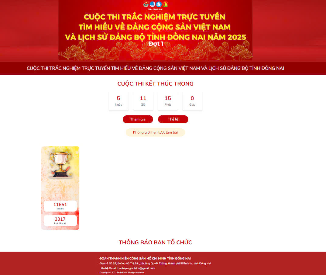 Cuộc thi được triển khai trong 02 đợt thi, từ ngày 06/01 đến hết ngày 20/02/2025. Trong đợt 1 của Cuộc thi đã có hơn 11.651 lượt thi trên Website Nền tảng học tập nghiên cứu lý luận chính trị của Đoàn Thanh niên Cộng sản Hồ Chí Minh tỉnh Đồng Nai. Đợt 2 của Cuộc thi sẽ diễn ra từ ngày 27/01 đến ngày 20/02/2025.