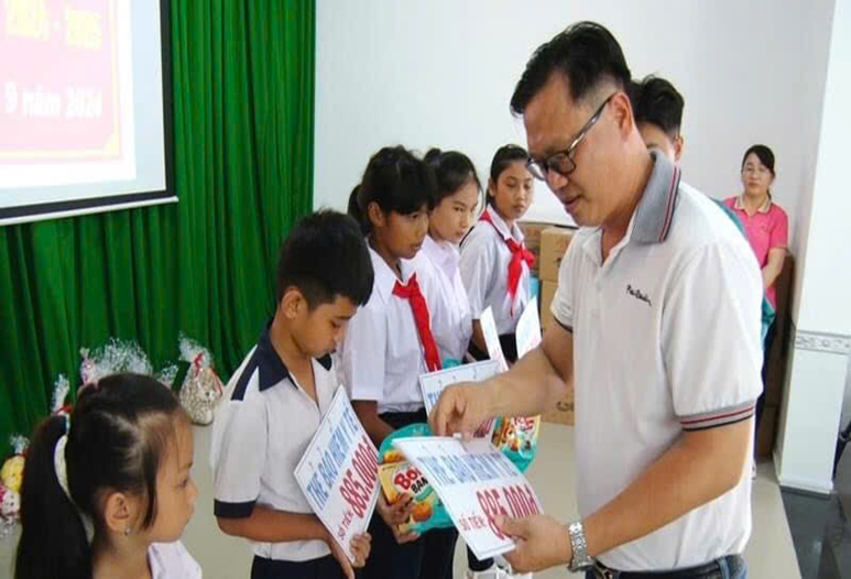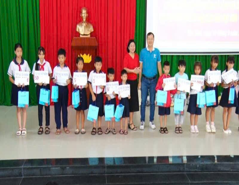 Đơn vị tài trợ trao học bổng cho các em học sinh