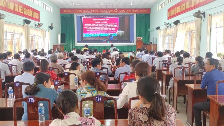 Hội nghị được Giáo sư, Tiến sĩ Trần Văn Phòng - Giảng viên cao cấp Học viện Chính trị Quốc gia Hồ Chí Minh, Ủy viên Hội đồng lý luận Trung ương truyền đạt nội dung bài viết “Tự hào và tin tưởng dưới lá cờ vẻ vang của Đảng, quyết tâm xây dựng một nước Việt Nam ngày càng giàu mạnh, văn minh, văn hiến và anh hùng” của Tổng Bí thư Nguyễn Phú Trọng. Bài viết này, Tổng Bí thư Nguyễn Phú Trọng viết nhân dịp kỷ niệm 94 năm Ngày thành lập Đảng Cộng sản Việt Nam (03/02/1930-03/02/2024). Nội dung bài viết rất quan trọng, có ý nghĩa đặc biệt về cả lý luận và thực tiễn, gồm 3 phần: Phần1 - Đảng ta ra đời, lãnh đạo đấu tranh giành độc lập dân tộc, giải phóng miền nam, thống nhất đất nước; Phần 2 - Đảng lãnh đạo khắc phục hậu quả chiến tranh, tiến hành công cuộc đổi mới và hội nhập quốc tế, xây dựng đất nước ta ngày càng đàng hoàng hơn, to đẹp hơn; Phần 3 - Phát huy hơn nữa truyền thống yêu nước và cách mạng vẻ vang, quyết tâm thực hiện thắng lợi mục tiêu phát triển đất nước đến năm 2025 và năm 2030, xây dựng một nước Việt Nam ngày càng giàu mạnh, văn minh, văn hiến và anh hùng.