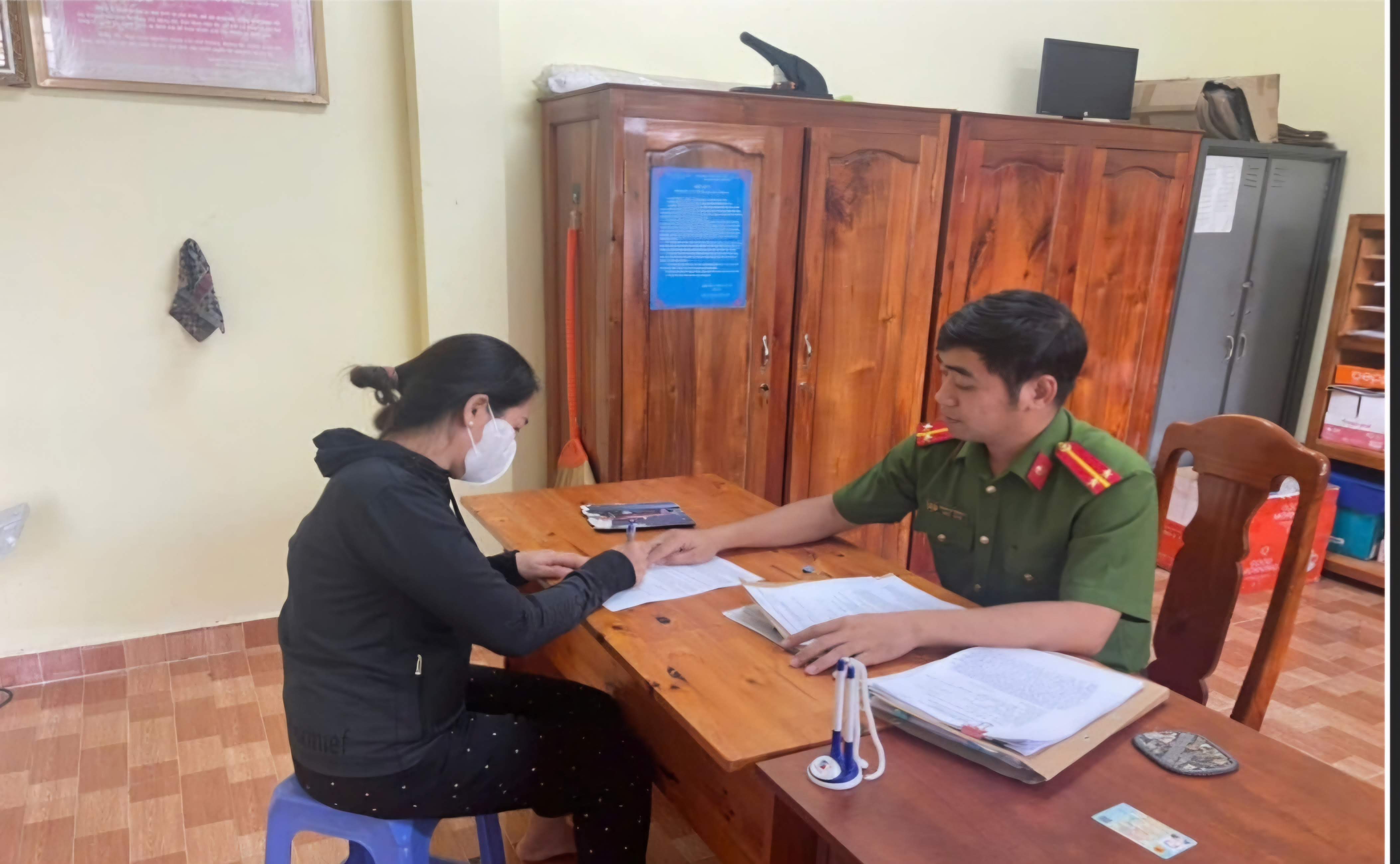 Công an xã Phú Điền, huyện Tân Phú làm việc với đối tượng có hành vi báo tin giả