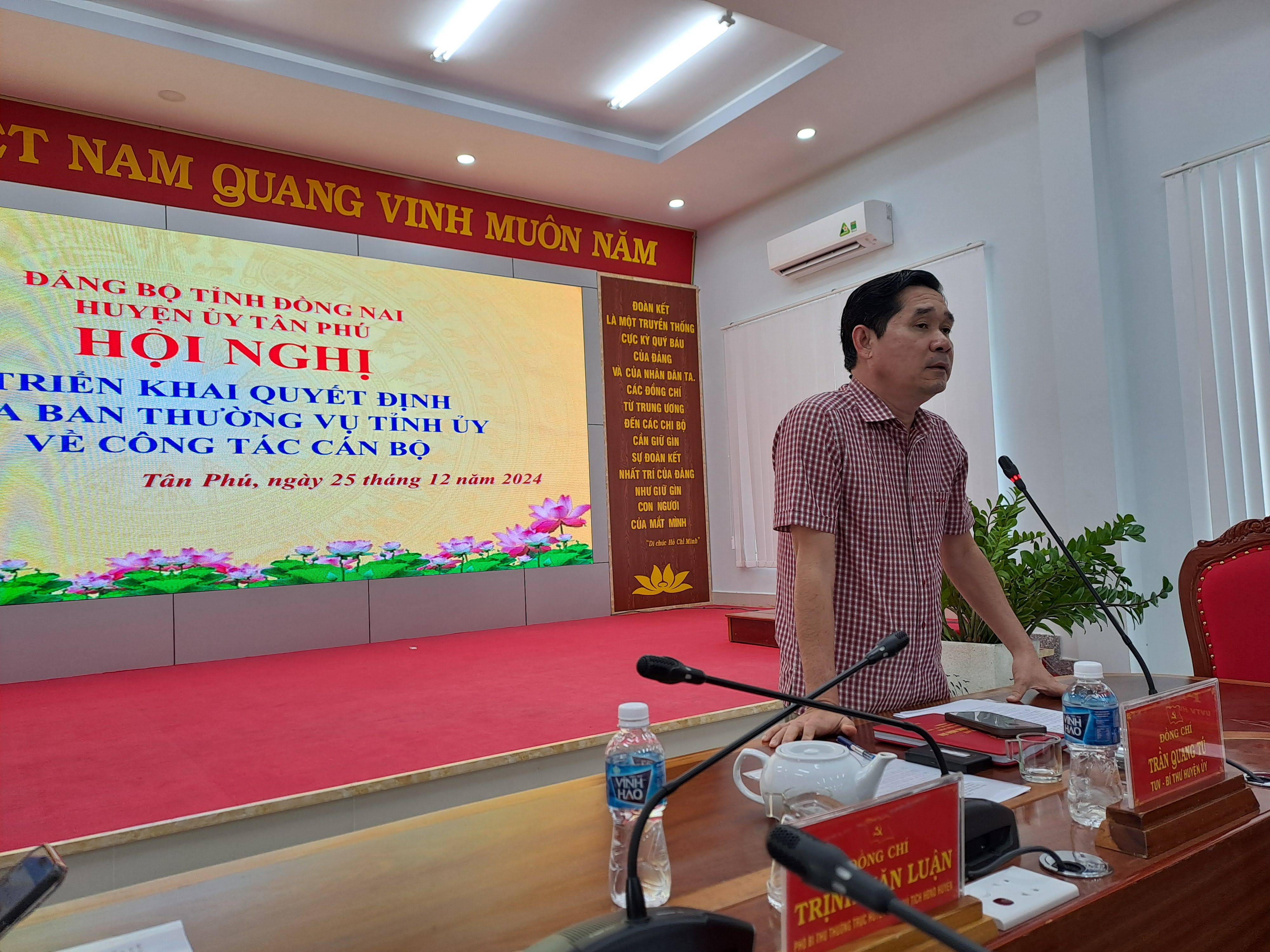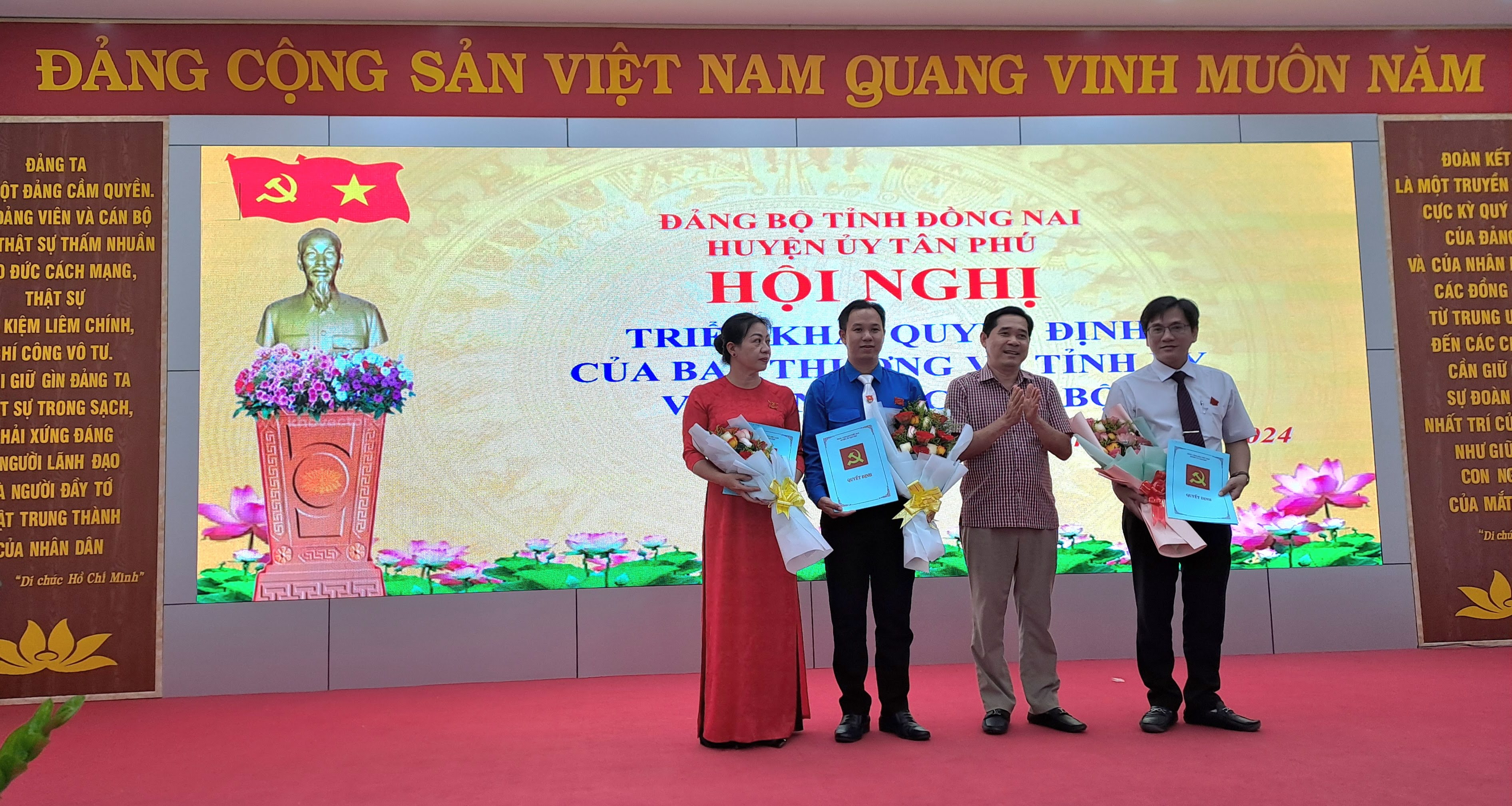 Đồng chí Võ Chí Công- Ủy viên Ban Thường vụ, Trưởng ban Tổ chức Huyện ủy công bố Quyết đinh số 1954-QĐ/TU ngày 28/11/2024 và Quyết đinh số 2001-QĐ/TU ngày 19/12/2024 của Ban Thường vụ Tỉnh ủy. Theo nội dung quyết định, Ban Thường vụ Tỉnh ủy chỉ định bổ sung Ủy viên Ban chấp hành đảng bộ huyện nhiệm kỳ 2020-2025 đối với các đồng chí: Trần Minh Tân – Trưởng phòng Nội vụ huyện, đồng chí Phạm Văn Trương – Bí thư Huyện đoàn và đồng chí Lưu Thị Tuyết Nhung – Chủ tịch Hội Liên hiệp Phụ nữ huyện.