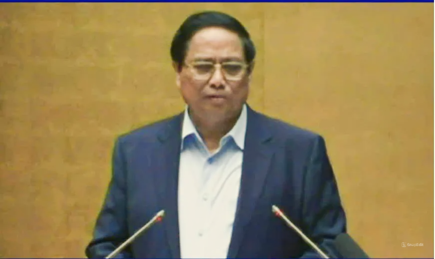 Đ/c Phạm Minh Chính - Ủy viên Bộ Chính trị, Thủ tướng Chính phủ truyền đạt chuyên đề tại Hội nghị (ảnh chụp màn hình)