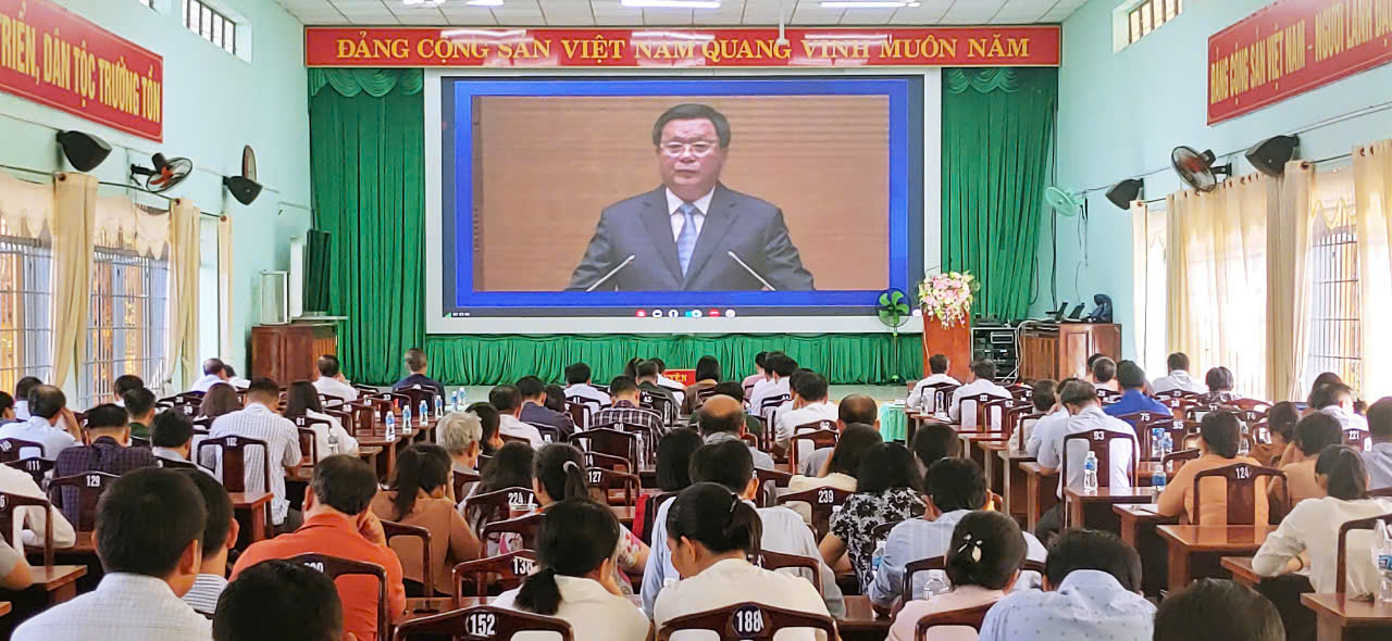 Tại điểm cầu hội trường Trung tâm Chính trị huyện, đồng chí Trần Quang Tú – Tỉnh ủy viên, Bí thư Huyện ủy dự và chủ trì