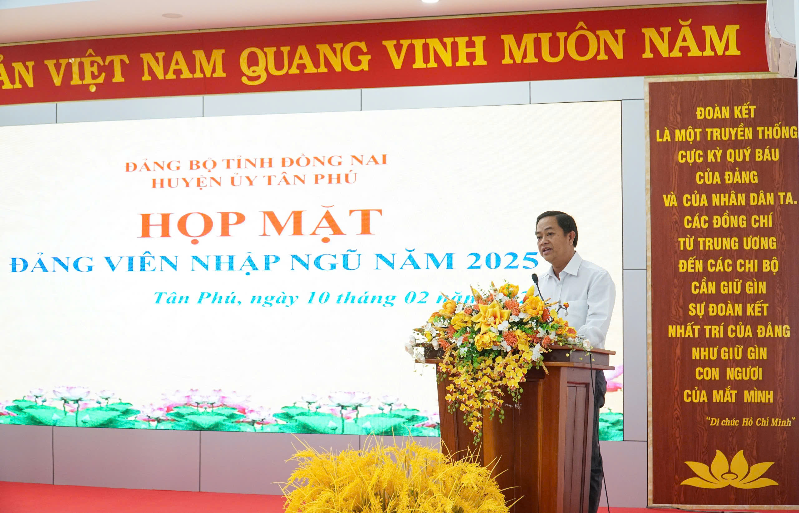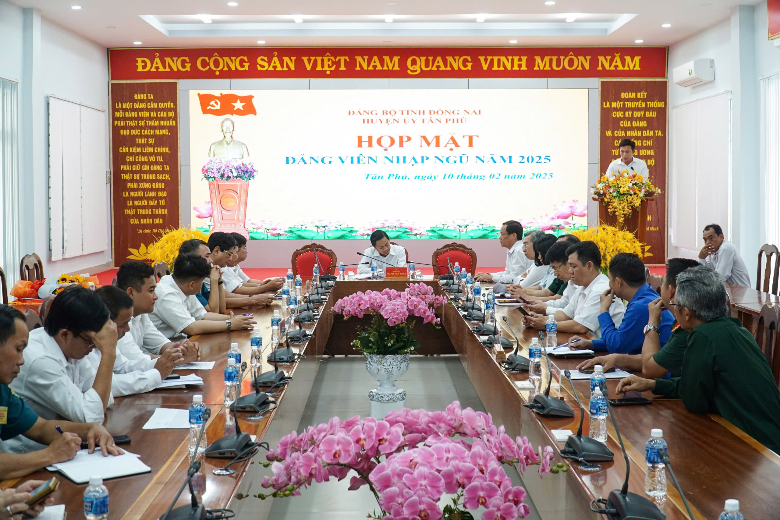 Ngày 10/02/2025, Huyện ủy Tân Phú tổ chức họp mặt, giao nhiệm vụ đảng viên lên đường nhập ngũ năm 2025. Về dự buổi họp mặt có đồng chí Trịnh Văn Luận - Phó Bí thư Thường trực Huyện ủy, Chủ tịch Hội đồng nhân dân huyện. Cùng dự có đại diện các Ban đảng, Văn phòng Huyện ủy, Ban Thường vụ Huyện đoàn, Hội Cựu Chiến binh Việt Nam huyện và Ban Thường vụ Đảng ủy các xã có đảng viên lên đường nhập ngũ.