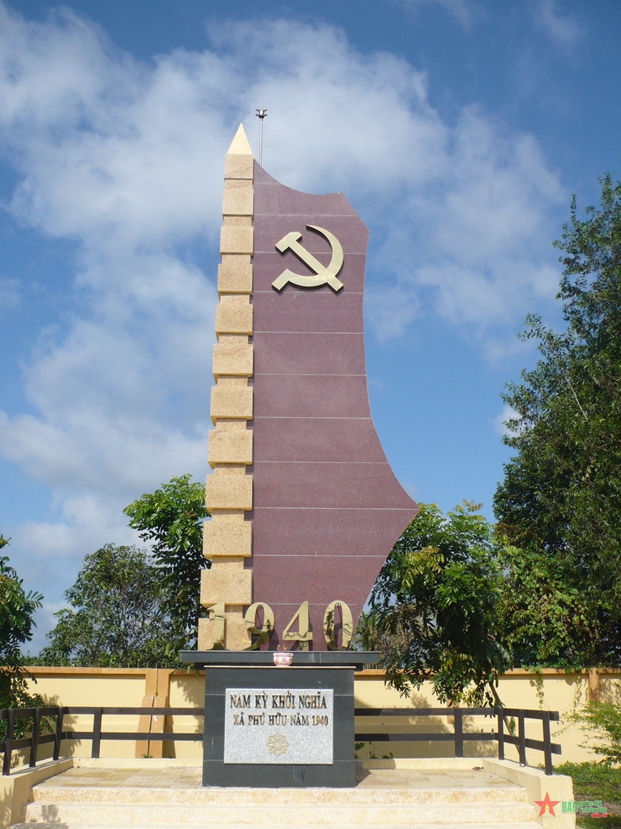 Bia kỷ niệm Khởi nghĩa Nam Kỳ năm 1940 tại Khu di tích Phú Hữu (Châu Thành, Hậu Giang)