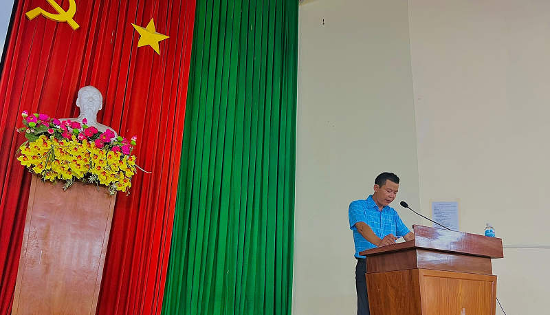 Đồng chí Nguyễn Thanh Tường, Phó Trưởng phòng Tổng hợp, Văn phòng Tỉnh ủy báo cáo tại Hội nghị