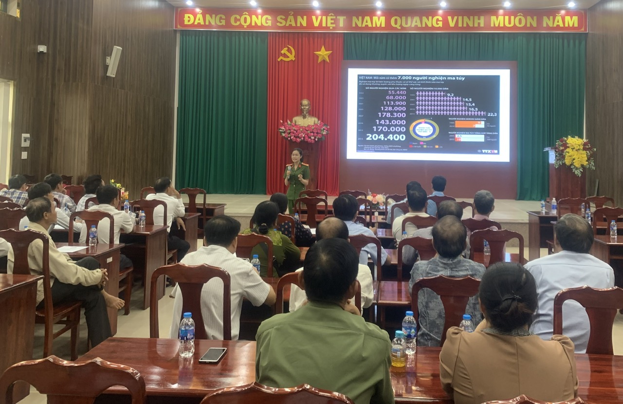 Đại úy Đinh Thị Hồng Thúy - Cán bộ Phòng PC04, Công an tỉnh tuyên truyền lớp tập huấn tại huyện Cẩm Mỹ, ngày 19/7/2024
