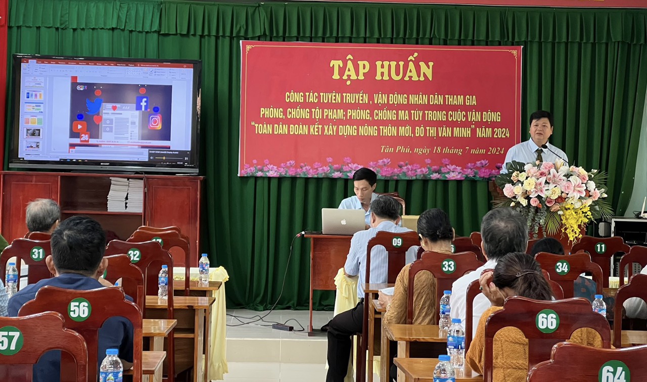 Trong 02 ngày 18-19/7, Ban Thường trực Ủy ban MTTQ Việt Nam tỉnh phối hợp với Công an tỉnh tổ chức tập huấn công tác tuyên truyền, vận động Nhân dân tham gia phòng, chống tội phạm, ma túy trong Cuộc vận động “Toàn dân đoàn kết xây dựng nông thôn mới, đô thị văn minh” năm 2024. Năm nay, lớp tập huấn được tổ chức tại 03 huyện là: Tân Phú, Định Quán và Cẩm Mỹ, tham dự có 300 cán bộ Mặt trận Tổ quốc cấp huyện, cấp xã và Ban Công tác Mặt trận các ấp, khu phố. Thông qua các lớp tập huấn, đã tuyên truyền, hướng dẫn thực hiện chương trình “04 giảm” trong phong trào “Toàn dân bảo vệ an ninh Tổ quốc”; công tác phòng, chống tội phạm; phòng, chống mua bán người; phòng, chống ma túy, mại dâm tại khu dân cư.