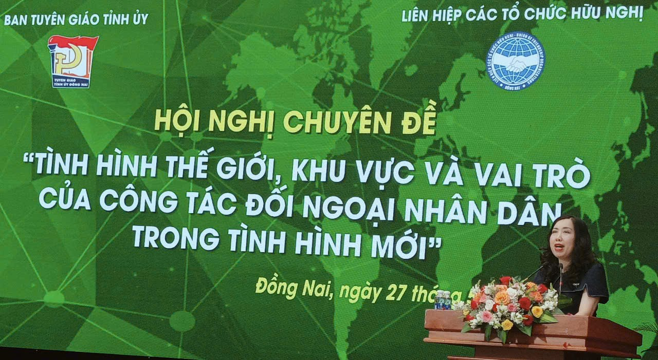 Bà Lê Thị Thu Hằng, Thứ trưởng Bộ Ngoại giao, Chủ nhiệm Ủy ban Nhà nước về người Việt Nam ở nước ngoài trình bày chuyên đề về công tác đối ngoại nhân dân tại Đồng Nai (tháng 5/2024)