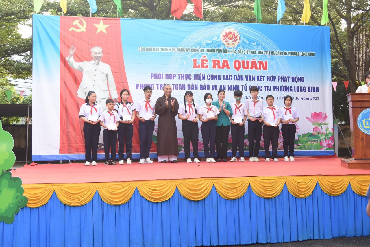 Tham dự Lễ ra quân có đồng chí Phạm Thị Kim Chung – Phó Trưởng ban Thường trực Ban Dân vận Tỉnh ủy, đồng chí Huỳnh Tấn Đạt - Phó Bí thư Thường trực Thành ủy Biên Hòa; các đồng chí đại diện lãnh đạo Ban Dân vận Thành ủy, Đảng ủy Công an thành phố Biên Hoà, Đảng ủy Nhà máy Z114; Đảng ủy, UBMTTQ, UBND, các ban, ngành, đoàn thể, lực lượng vũ trang và Nhân dân trên địa bàn phường Long Bình.