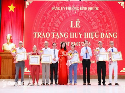 Đảng ủy phường Bình Phước kỷ niệm 96 năm Ngày thành lập Đảng và trao Huy hiệu Đảng đợt 3-2 02/02/2026 17:04:25 11 Sáng 2-2, Đảng ủy phường Bình Phước tổ chức kỷ niệm 96 năm Ngày thành lập Đảng Cộng sản Việt Nam (3-2-1930 - 3-2-2026), trao Huy hiệu Đảng đợt 3-2. Ủy viên Ban Thường vụ Tỉnh ủy, Bí thư Đảng ủy, Chủ tịch HĐND phường Bình Phước Giang Thị Phương Hạnh chủ trì buổi lễ.